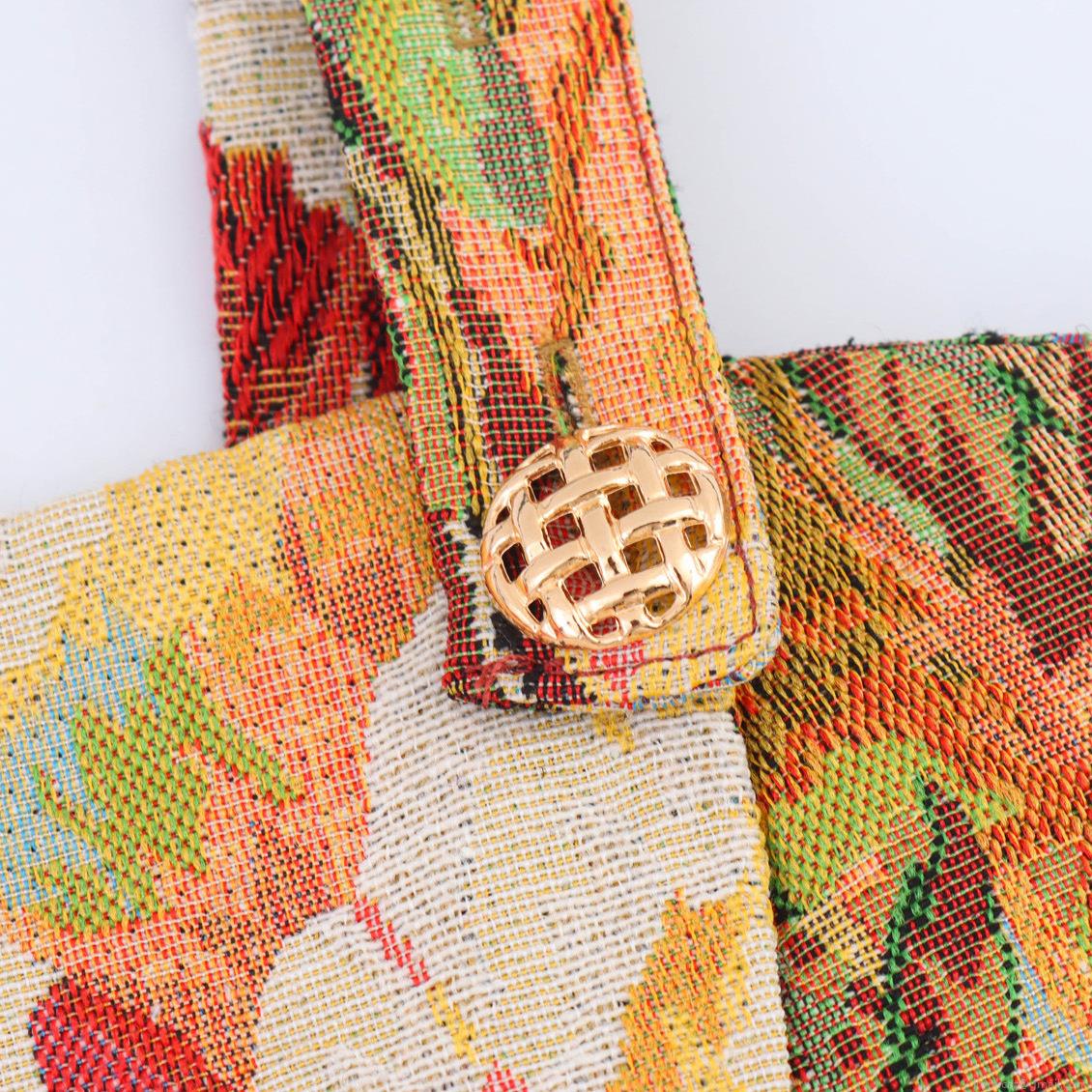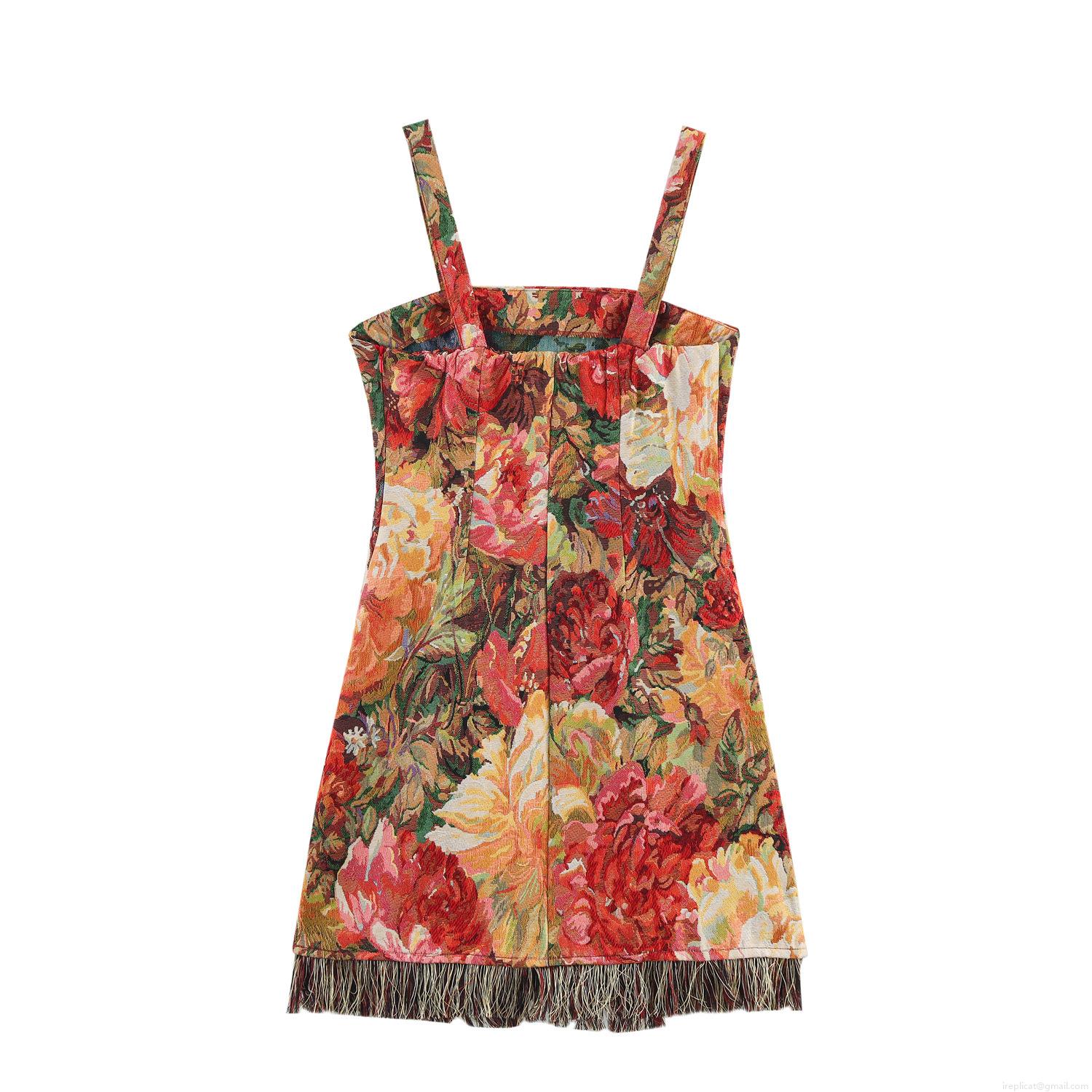 French Vintage Oil Painting Floral Jacquard Mini Dress With Tassel Hem Square Neck Sleeveless Brocade Dress For Women Party Elegant Retro Dress