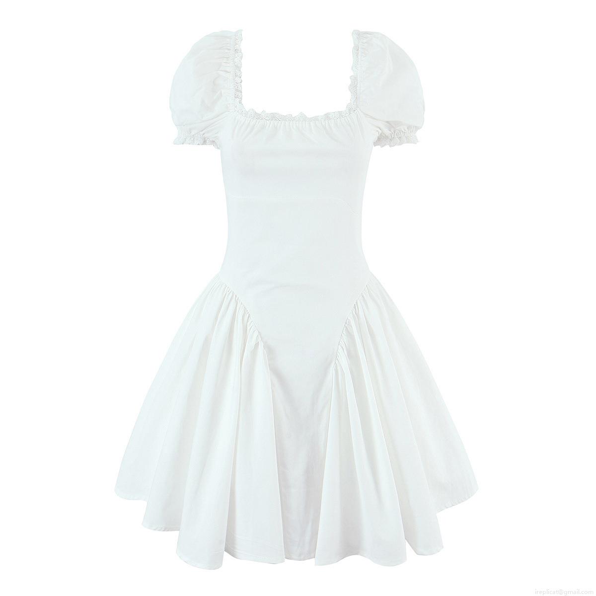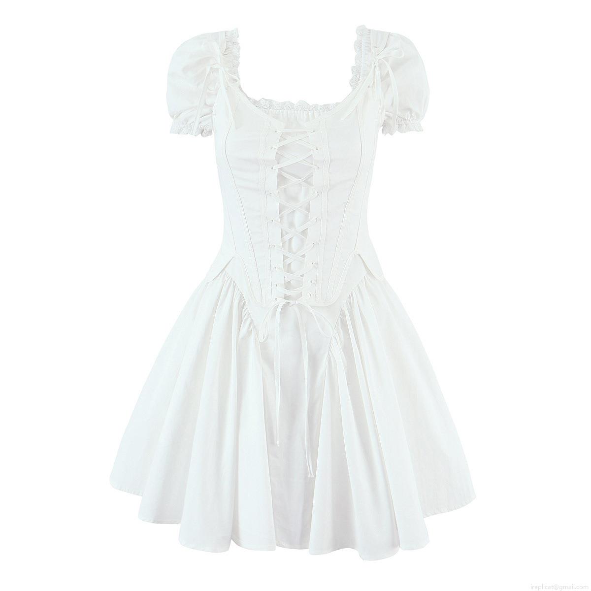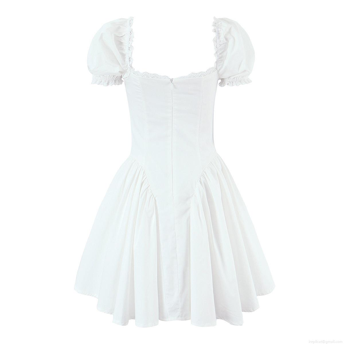 French Vintage White Puff Sleeve Mini Dress and Lace-up Corset Camisole Top Cotton Polyester Blend Lace Trim Bodycon Outfits for Women