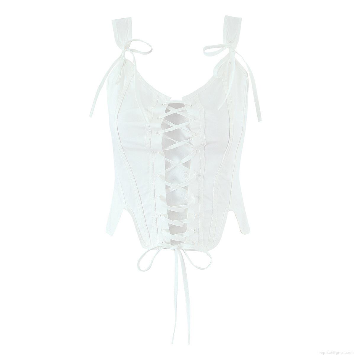 • French Vintage White Puff Sleeve Mini Dress and Lace-up Corset Camisole Top Cotton Polyester Blend Lace Trim Bodycon Outfits for Women