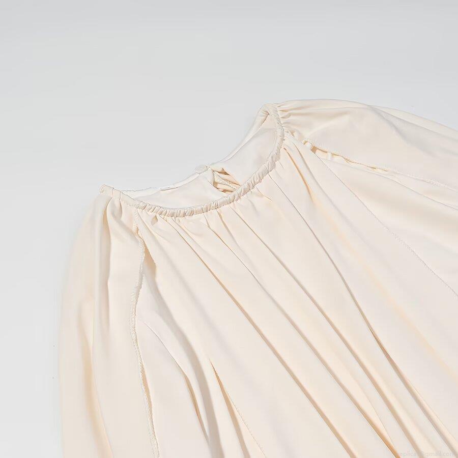 • Myst&Za Elegant Round Neck Cape Style Pleated Loose Mini Dress For Women Solid Color Long Sleeve Flare A-Line Dress Autumn Winter Casual Party Wear