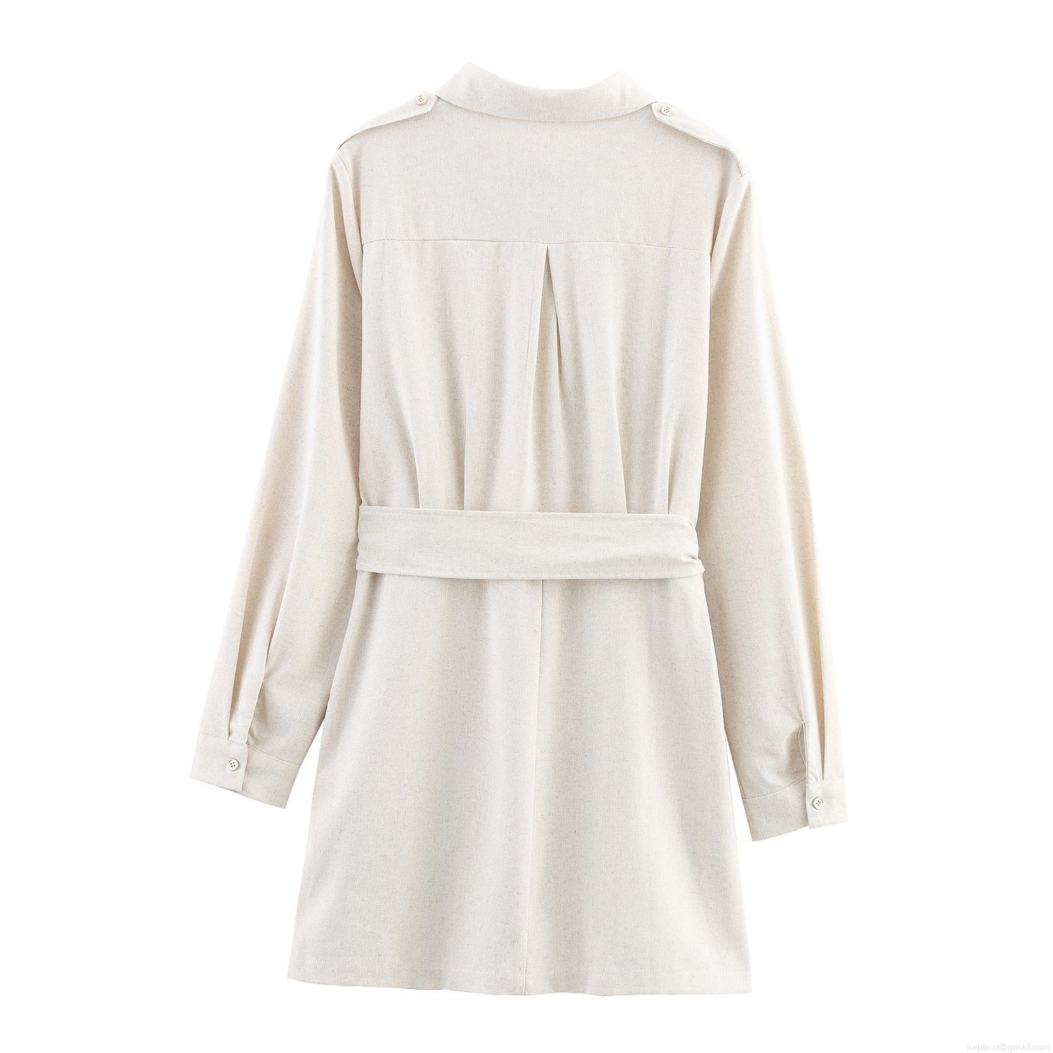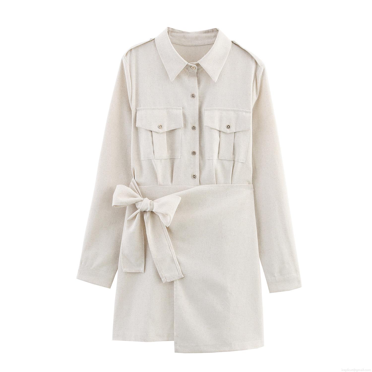 • Retro Khaki Workwear Wrap Dress For Women Long Sleeve Lapel A-Line Mini Dress With Tie Waist And Pockets Autumn Winter Casual Streetwear Polyester Short Dress