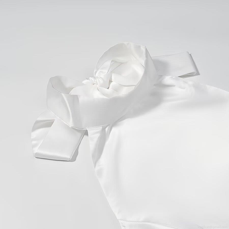 • Satin Halter Mini Dress With 3D Flower Ruffle Hem And Large Back Bow Sexy Backless Bodycon Party Dress For Women White Summer Evening Dress