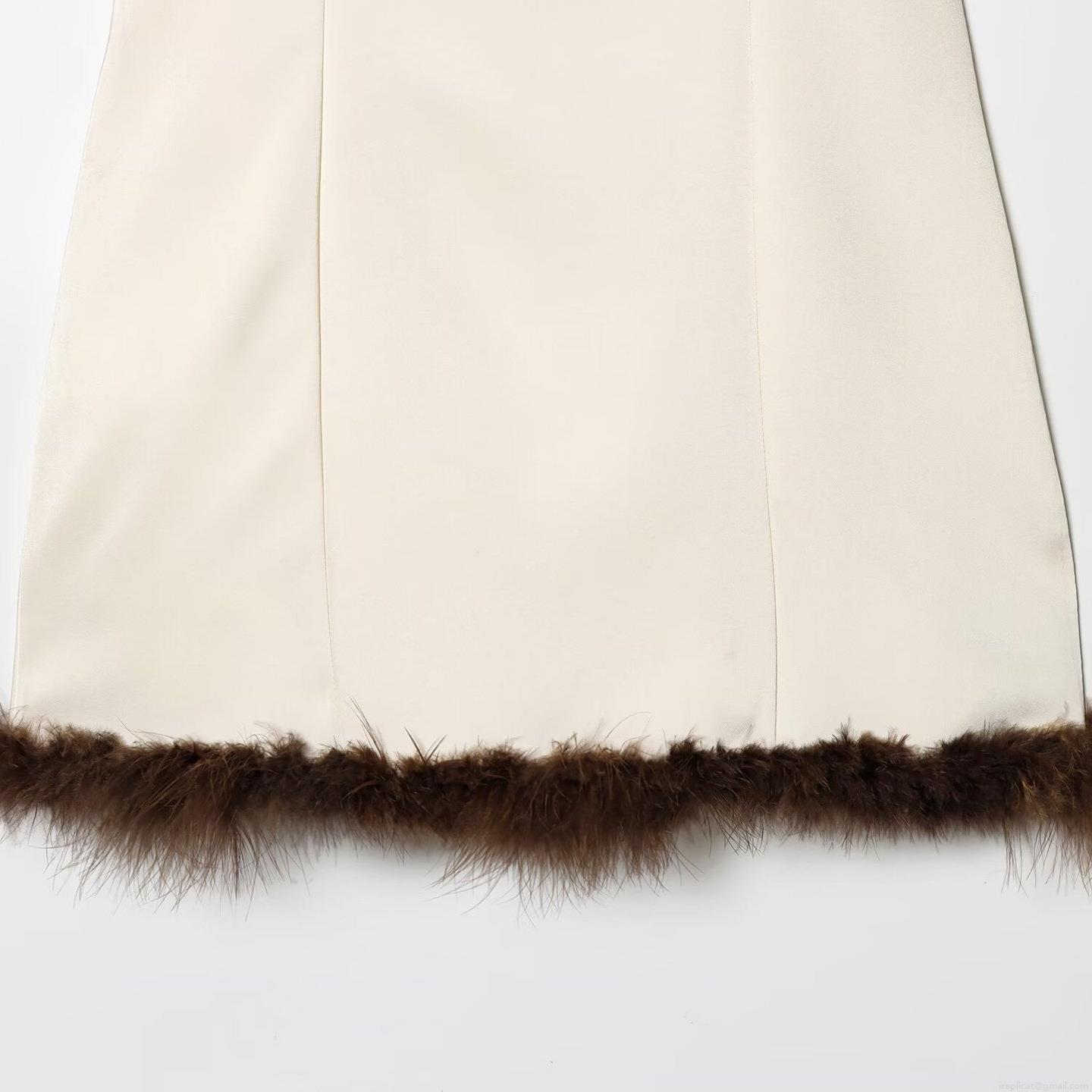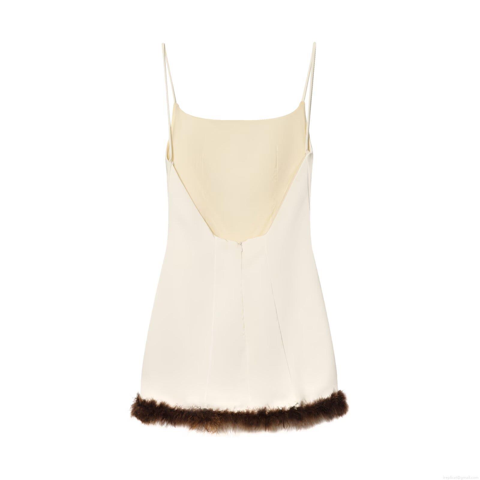 • Sexy Backless Camisole Dress For Women With Brown Feather Trim Double-faced Acetate Mini Slip Dress For Evening Party Cocktail Clubwear