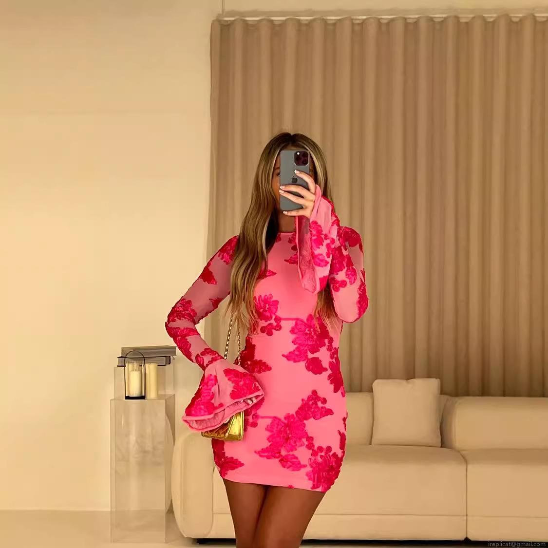 • Sexy Backless Flare Sleeve Floral Embroidery Mini Dress For Women Elegant Polyester Mesh Bodycon Party Evening Short Dress