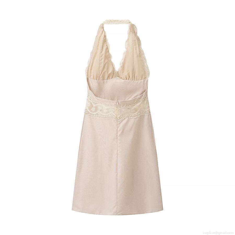 • Sexy Backless Halter Neck Mini Dress Elegant Lace Patchwork V-Neck Sleeveless Slim Fit Party Club Dress For Women Polyester Spandex Lace