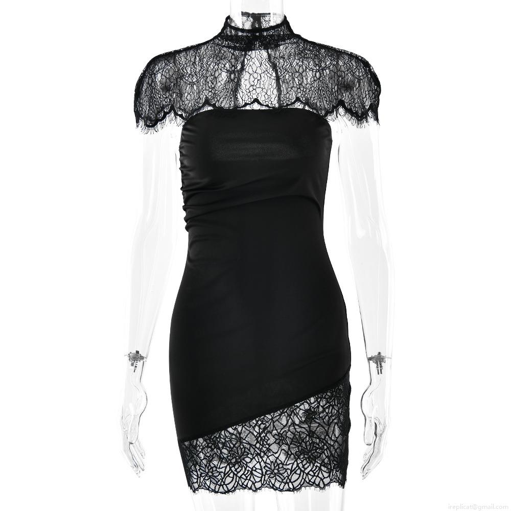 Solid Color, Splice, Lace, Pleats, Backless, Perspective, Hip Wrap