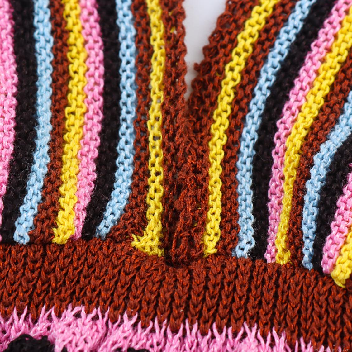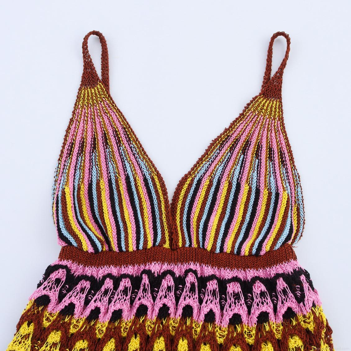 • Sexy Bohemian Crochet Knitted Mini Dress With Tassels Colorful Striped V Neck Backless Sleeveless Cami Dress For Vacation Beach Women Summer Party