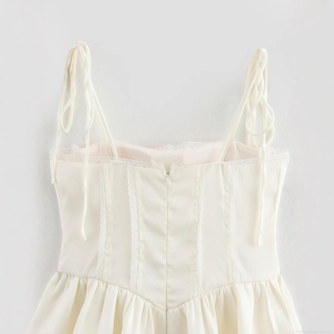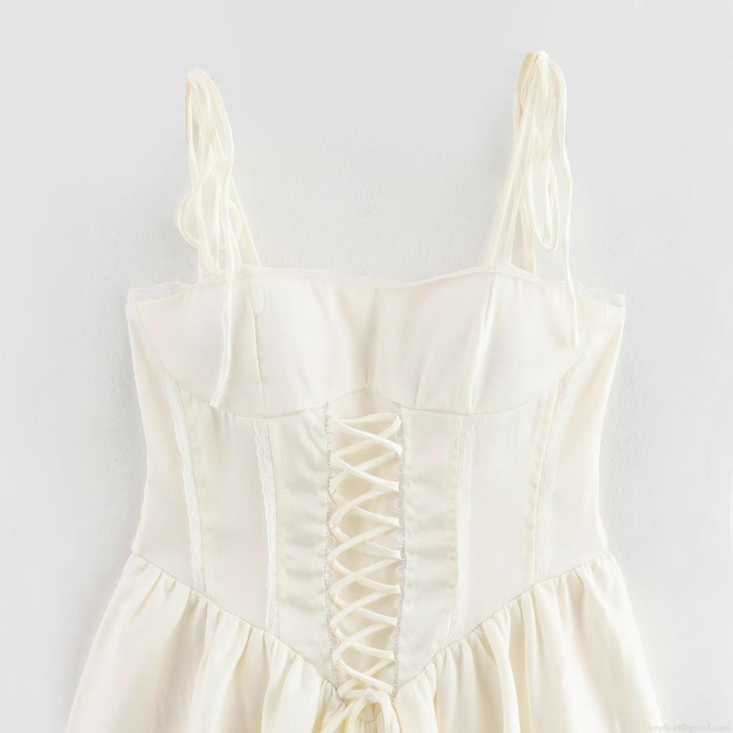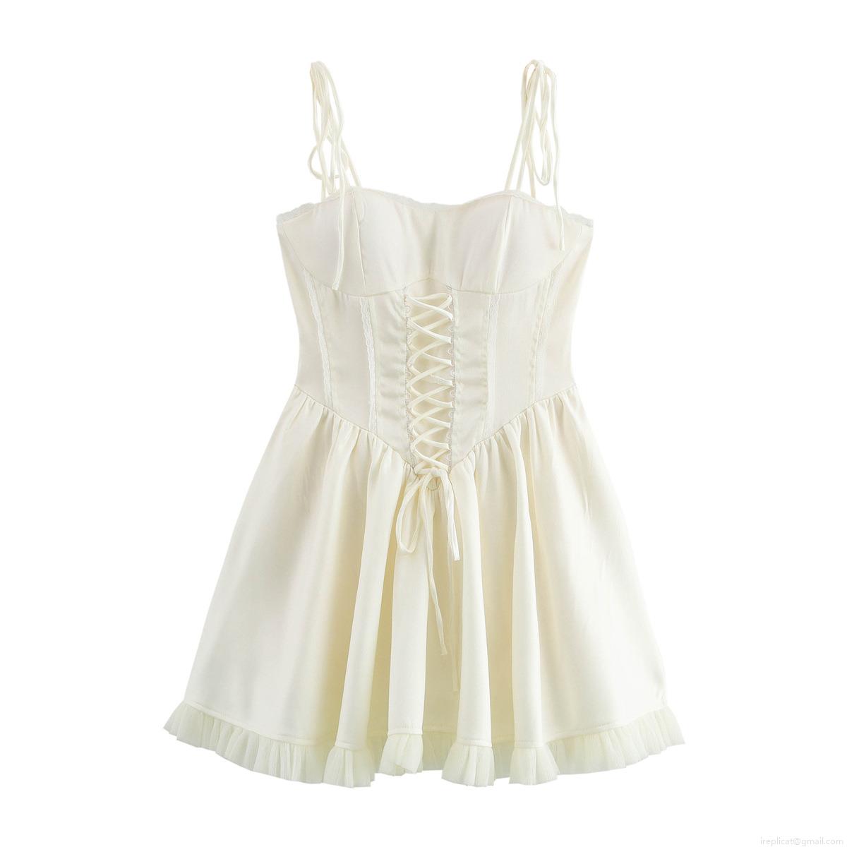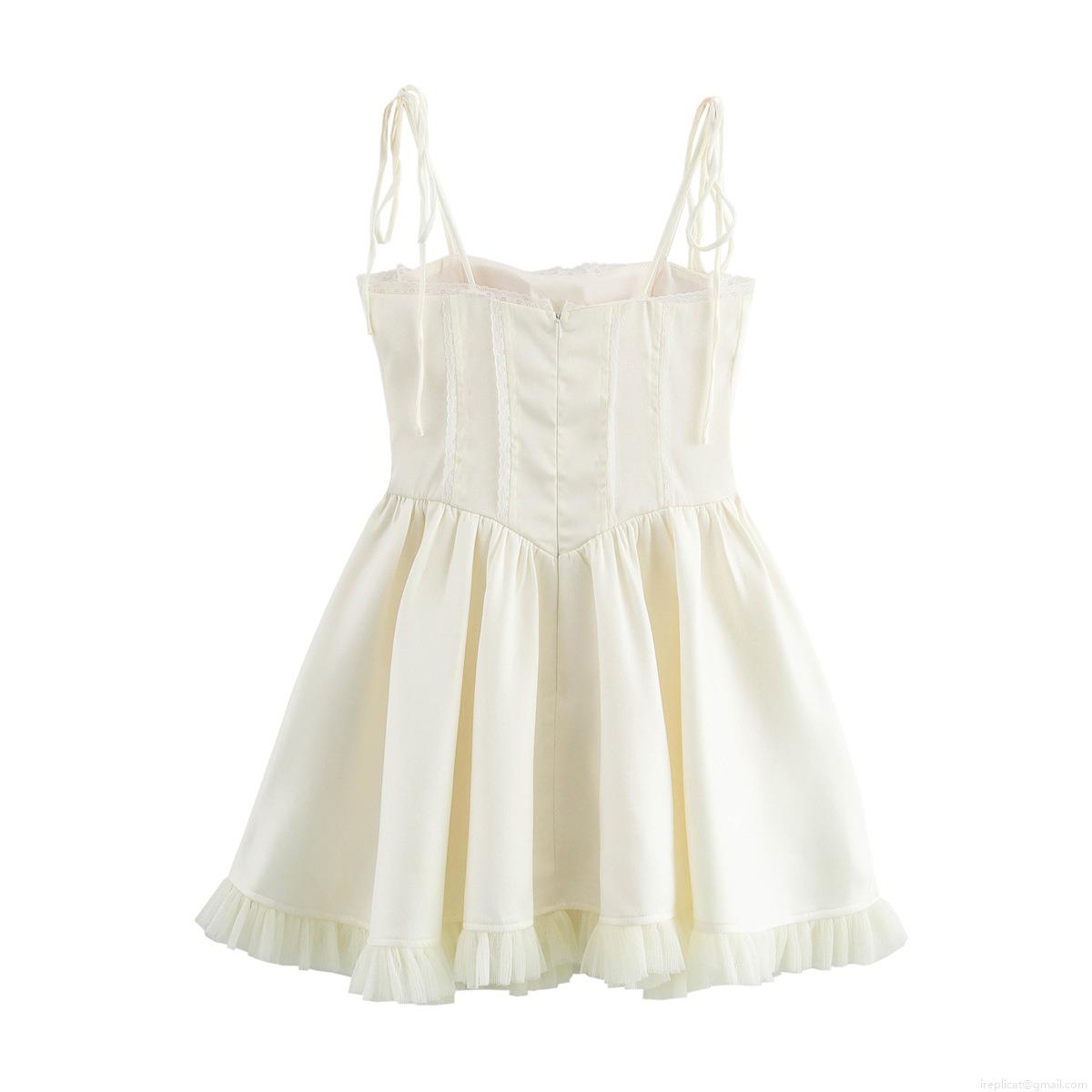 • Sexy Corset Lace-Up Mini Dress For Women Satin Mesh Patchwork Lace Strap Dress European Style Summer Sleeveless A-Line Party Clubwear Dress