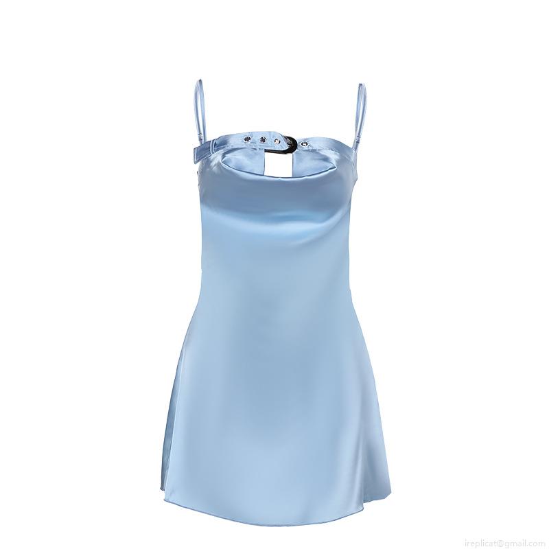 Sexy Cowl Neck Satin Mini Slip Dress for Women Polyester Bodycon Hollow Out Party Nightclub Summer Vacation Dress with Metal Buckle Detail