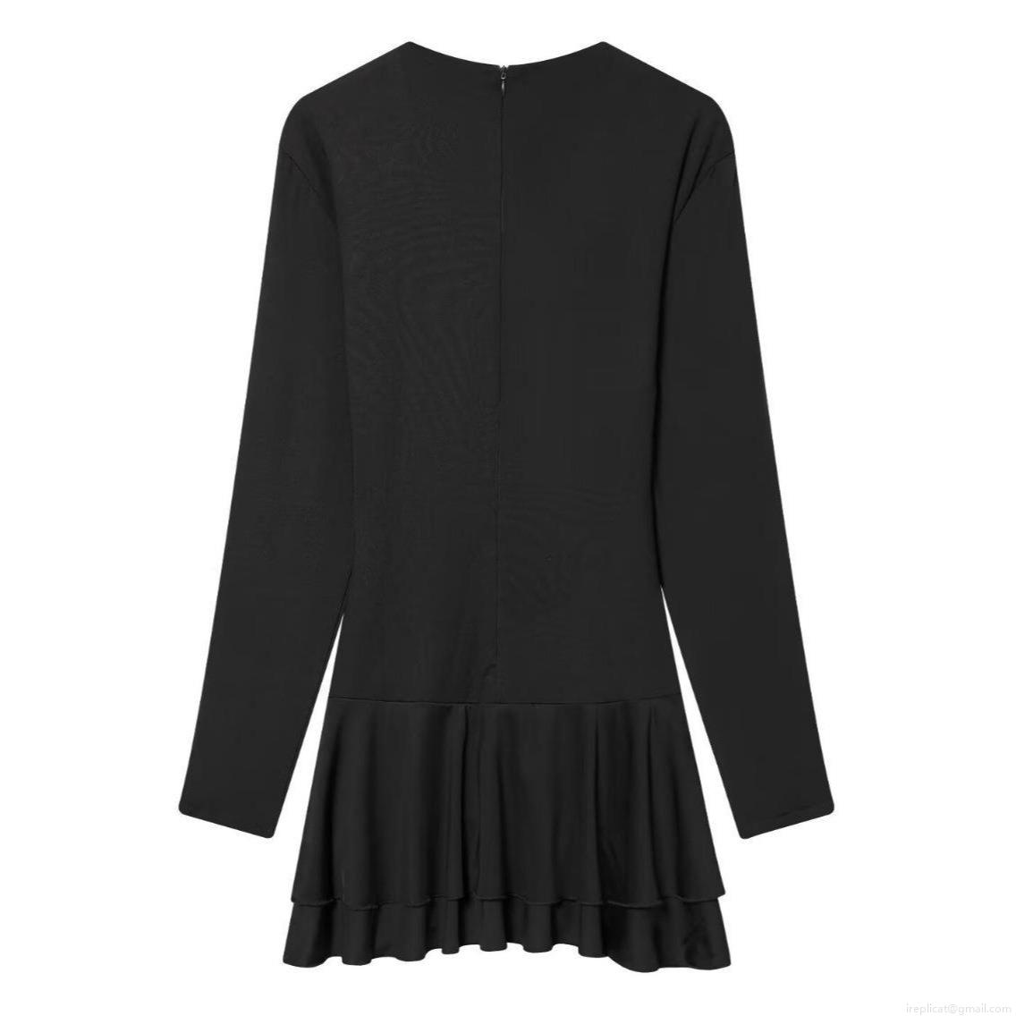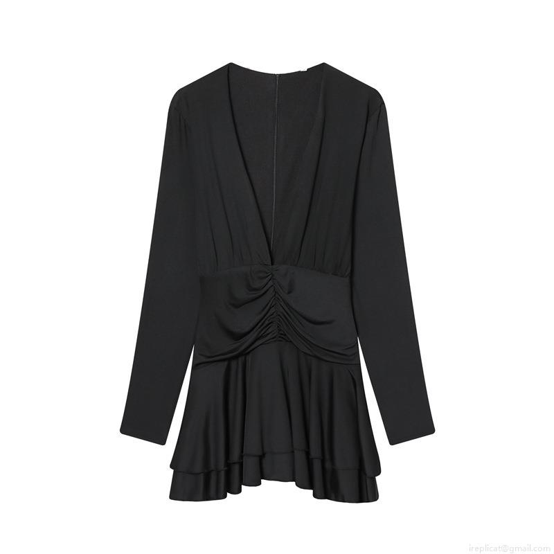 • Sexy Deep V Neck Long Sleeve Pleated Bodycon Mini Dress for Women Elegant Double Layer Ruffle Hem Solid Color Polyester Slim Fit Party Clubwear Evening Outfits