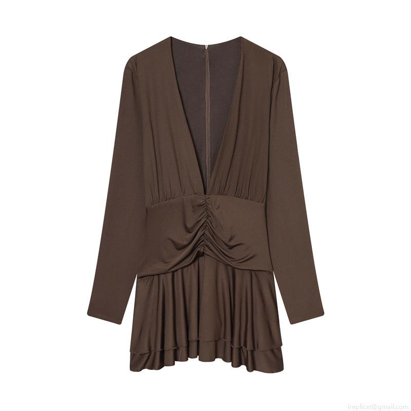 Solid Color, Pleats, Ruffles, Waist shaping, Deep V