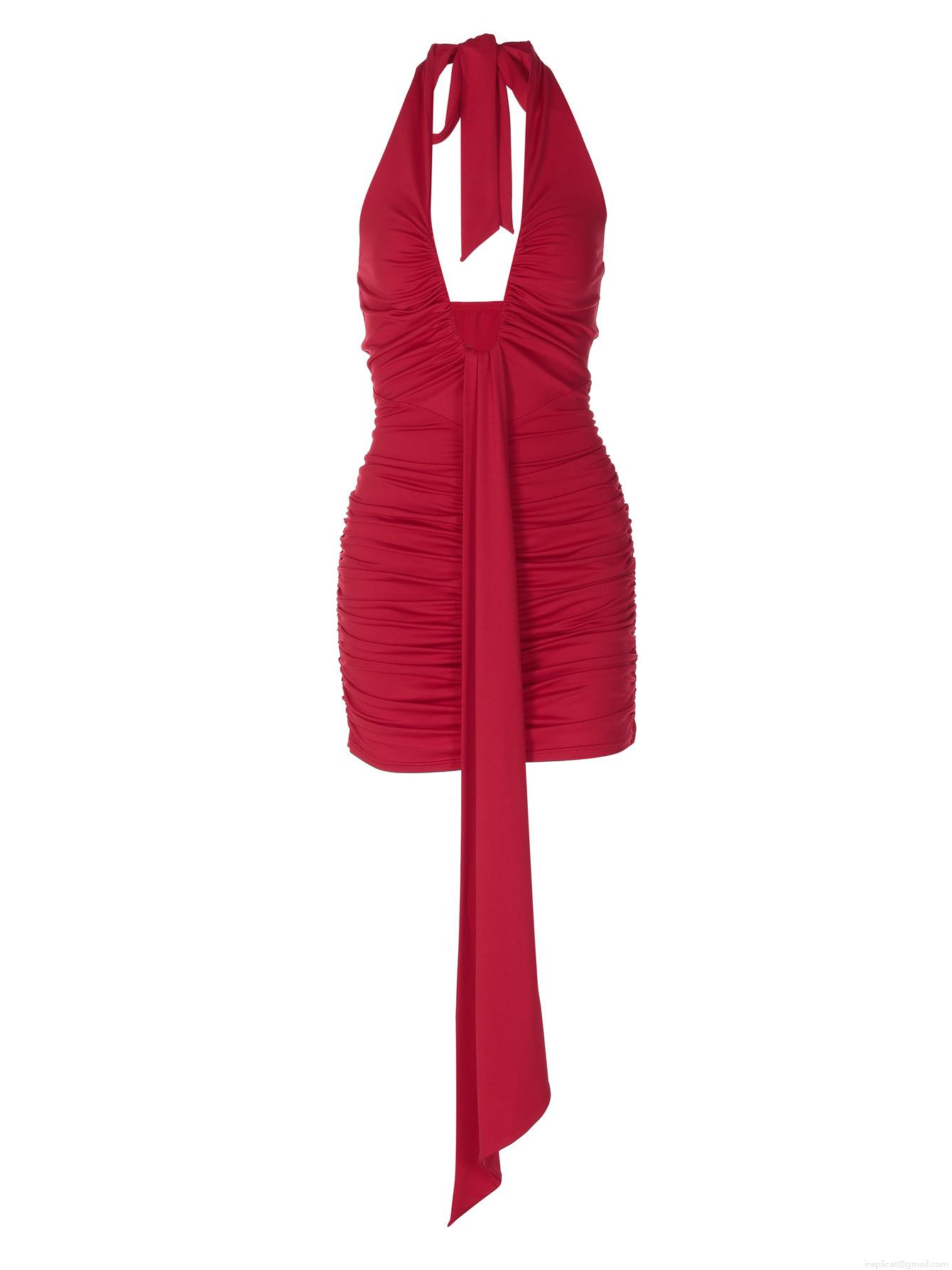 Sexy Deep V Plunge Halter Neck Ruched Bodycon Mini Dress For Women Polyester Spandex Slim Fit Sleeveless Party Clubwear Night Out Cocktail Dresses