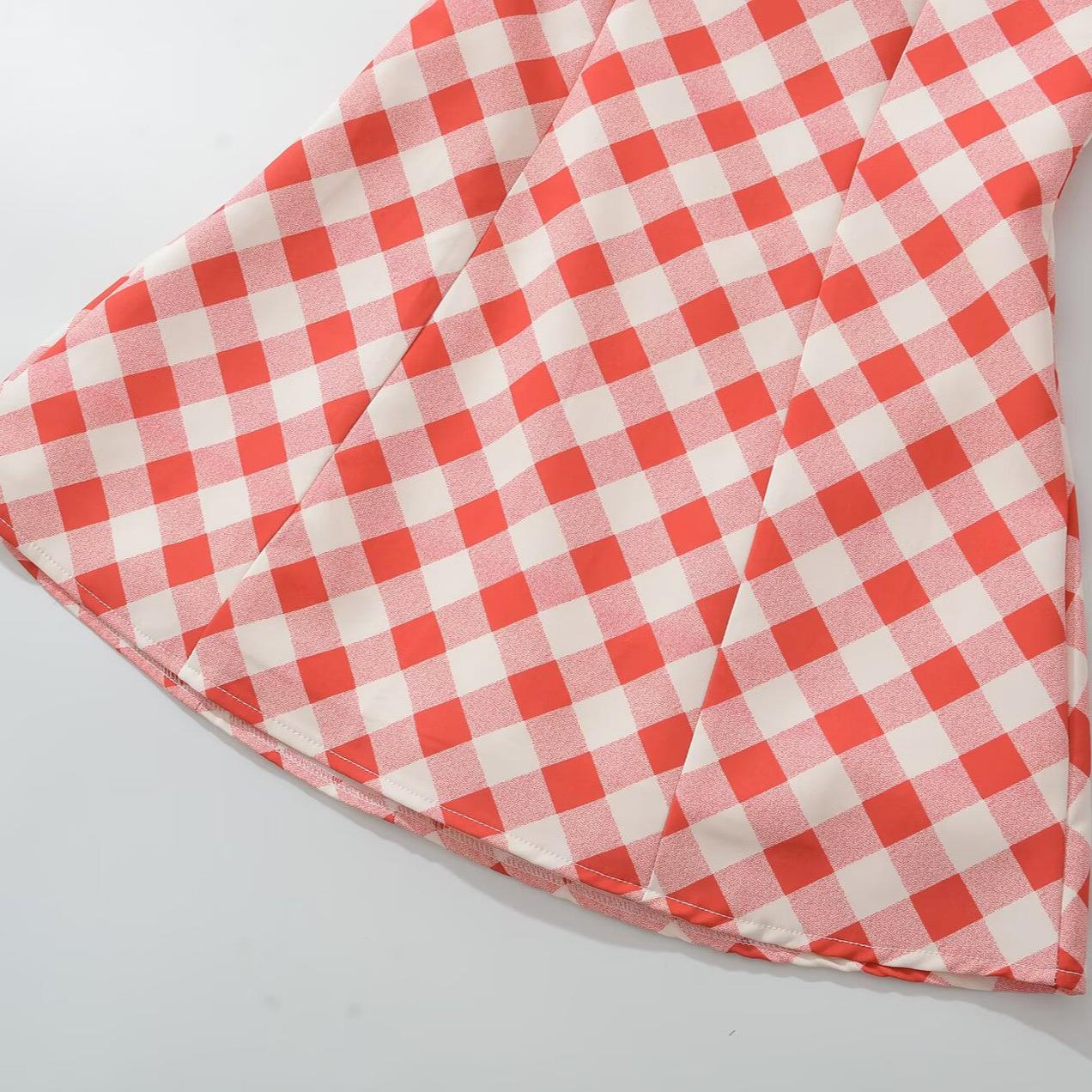 Sexy Gingham Halter Mini Dress For Women Retro Red White Plaid Backless A-Line Short Dress Slim Fit Lace Up Summer Casual Party Outfits