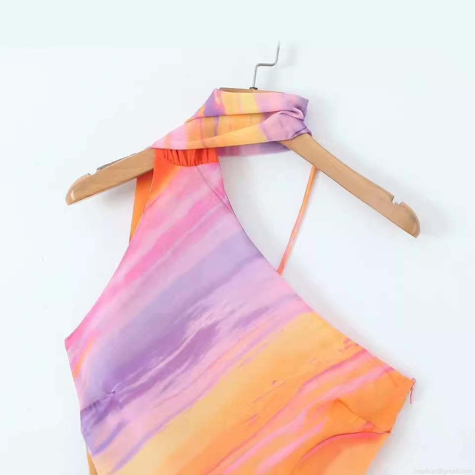 Splice, Tie Dye, Asymmetric, Gradient, Neckband, Backless, Sloping Shoulders, Abstract Texture