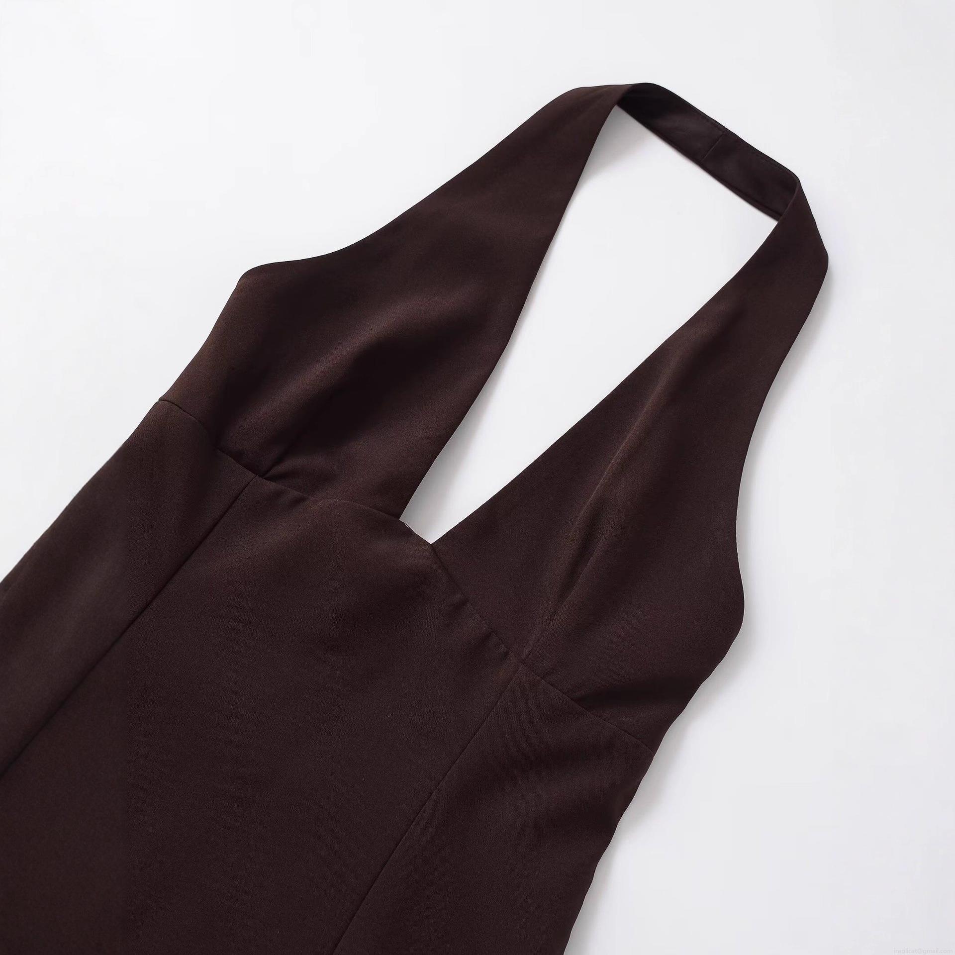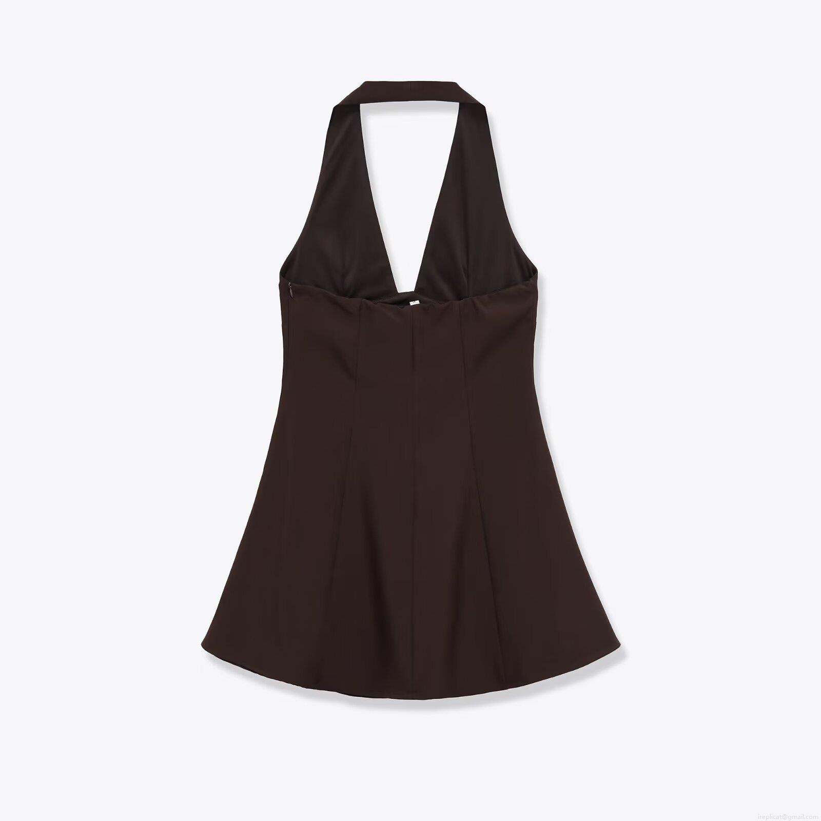 • Sexy Halter Neck Backless Mini Dress Polyester Acetate Satin Deep V Neck Elegant Party Clubwear Sundress For Women