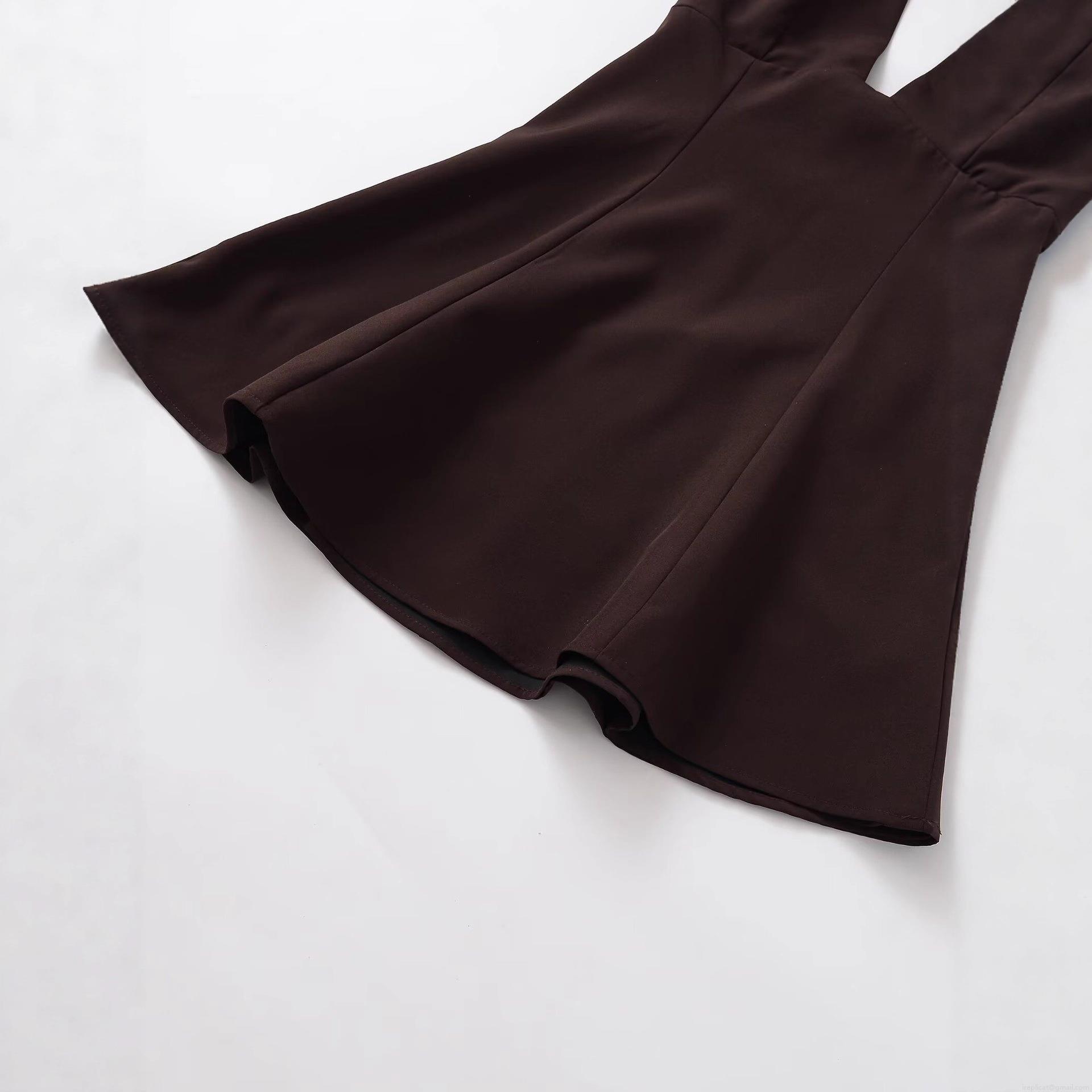 Solid Color, Neckband, Backless, Deep V, Double-layer Design