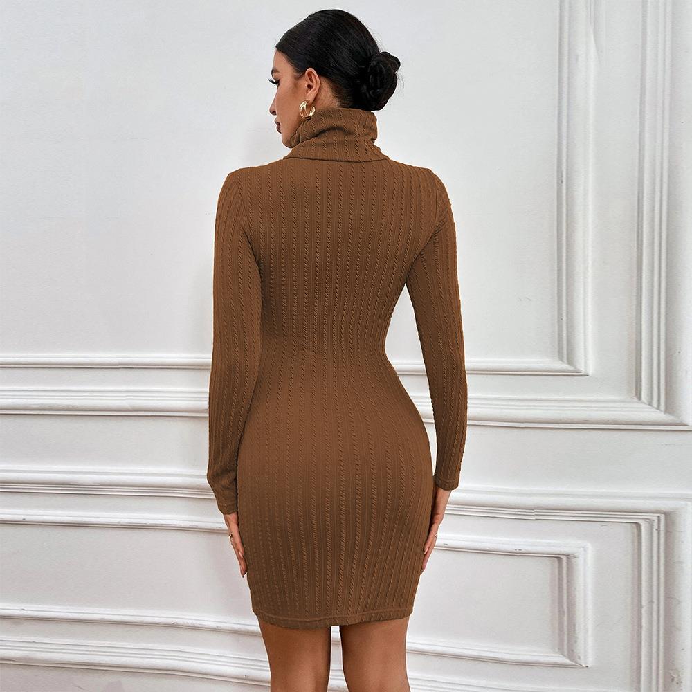 • Sexy Hollow Out High Neck Bodycon Mini Dress For Women Solid Color Long Sleeve Ribbed Knit Slim Fit Short Pencil Dress Cotton Blend Autumn Winter Fashion