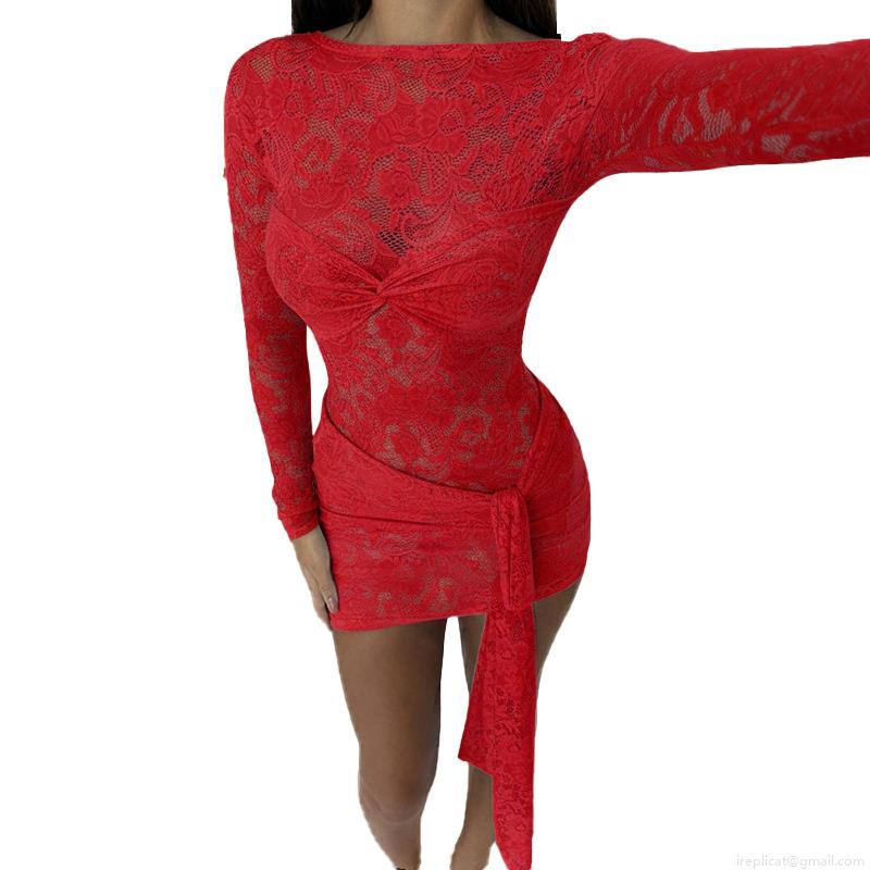 • Sexy Lace Long Sleeve Mini Dress For Women Bodycon Slim Fit Party Club Dress With Knot Detail And Ribbon Ties Hollow Out Polyester Spandex Lace Dress