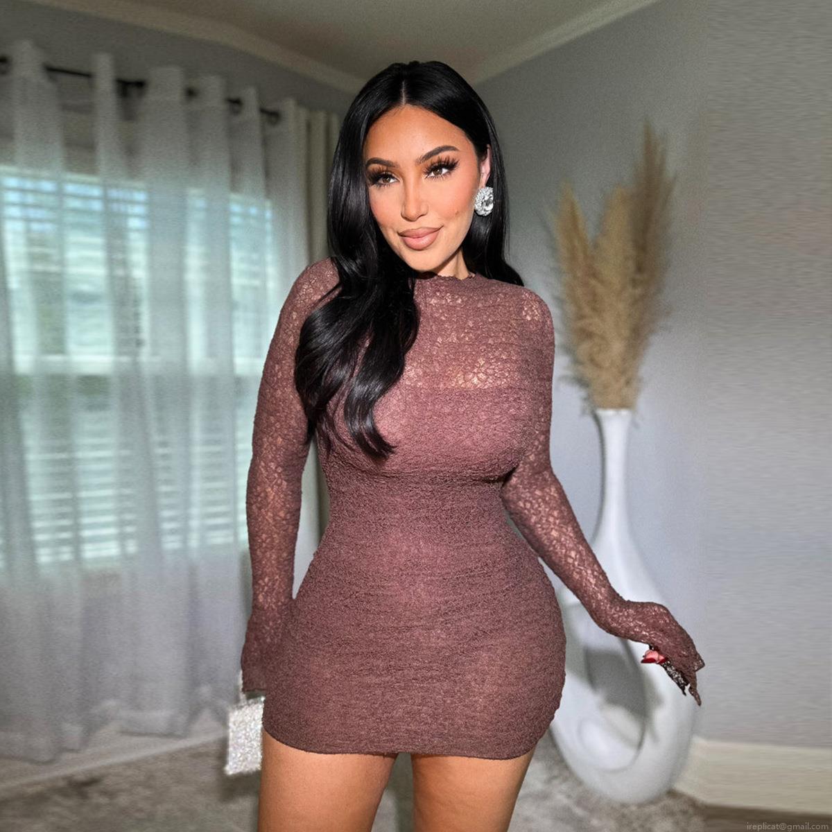 • Sexy Lace Mini Dress Long Sleeve Hollow Out Bodycon Party Clubwear For Women Elegant Round Neck Slim Fit Sheer Floral Overlay Cocktail Gown