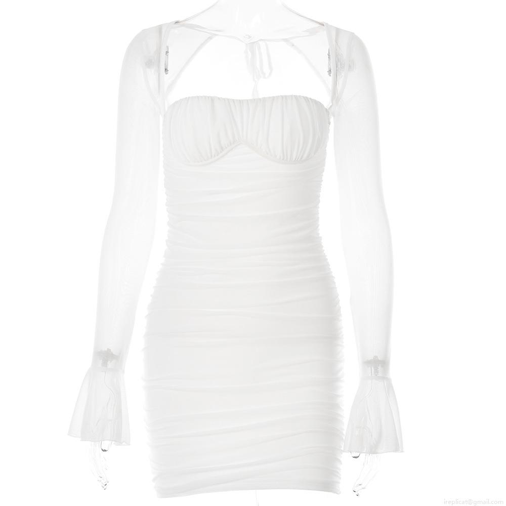 • Sexy Mesh Long Sleeve Bodycon Mini Dress For Women Elegant Ruched Off Shoulder Party Club Dress Polyester Mesh Patchwork Backless Short Dresses