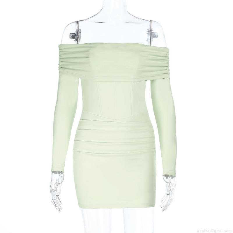 • Sexy Off The Shoulder Long Sleeve Mini Dress Polyester Spandex Ruched Bodycon Corset Waist Dress For Women Party Club Night Out Solid Mint Green Slim Fit Short Dress