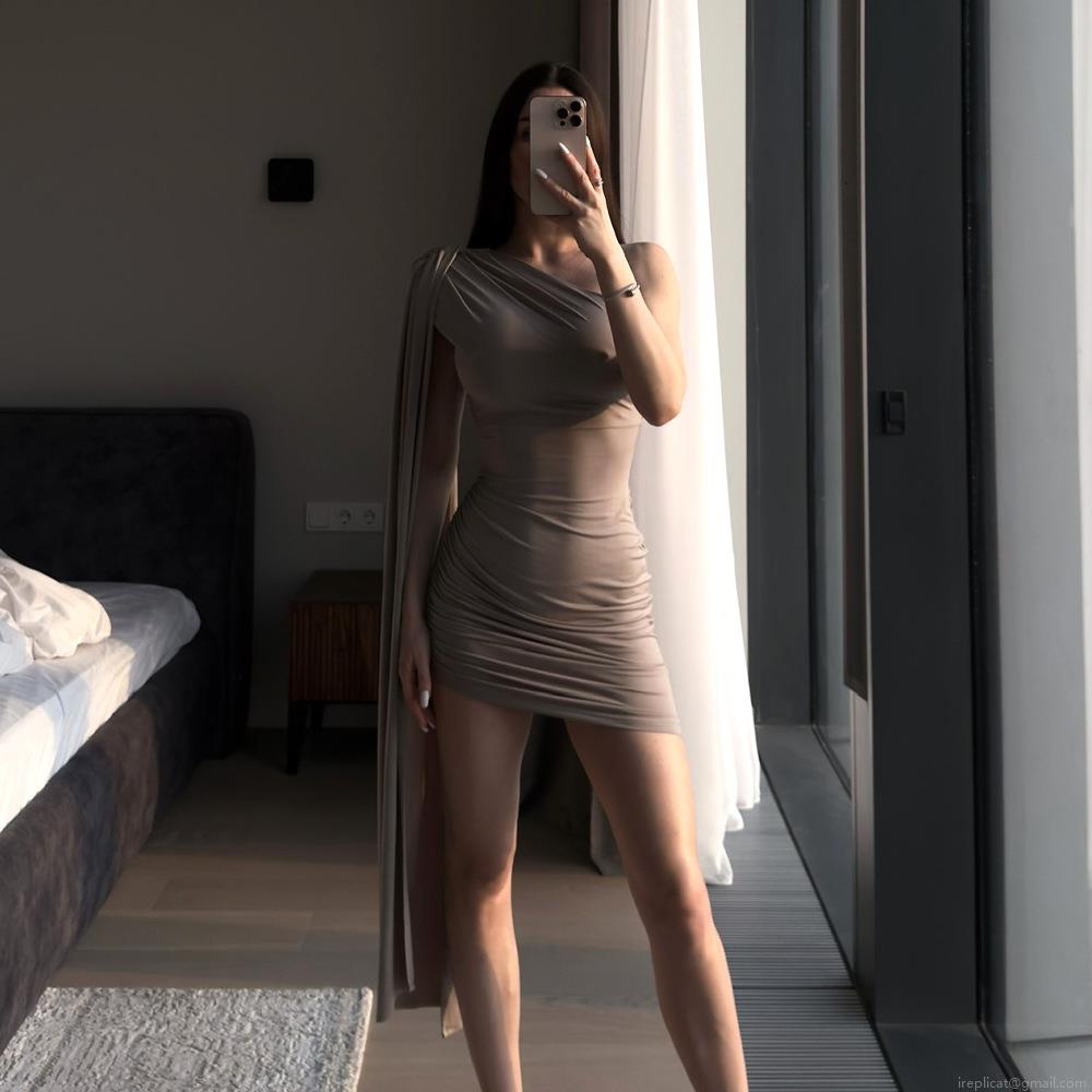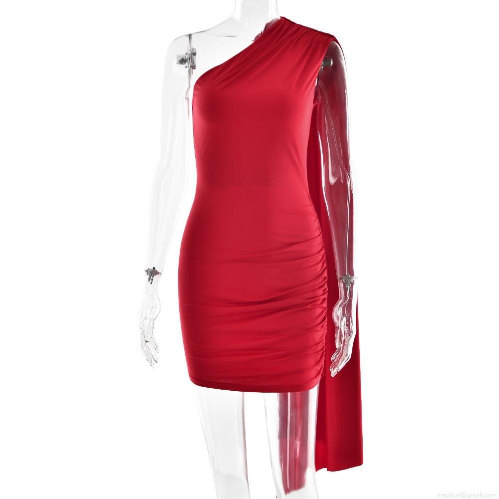 • Sexy One Shoulder Mini Dress Women Summer Pleated Bodycon Streamer Party Dress Solid Color Sleeveless Milk Silk Slim Fit Clubwear Nightout Short Dress