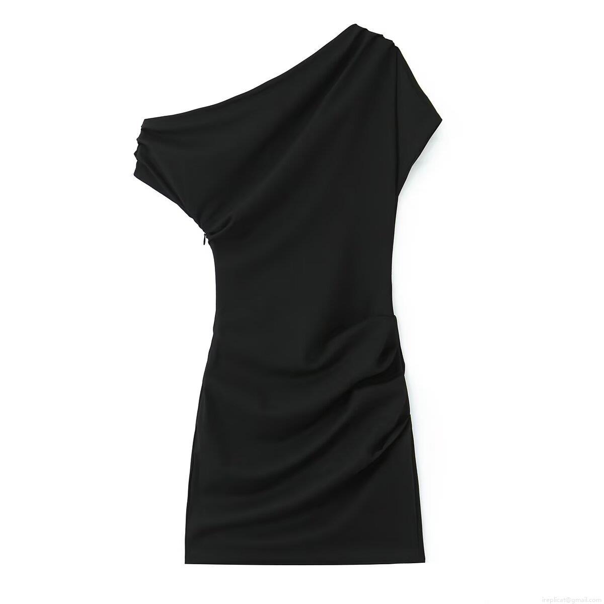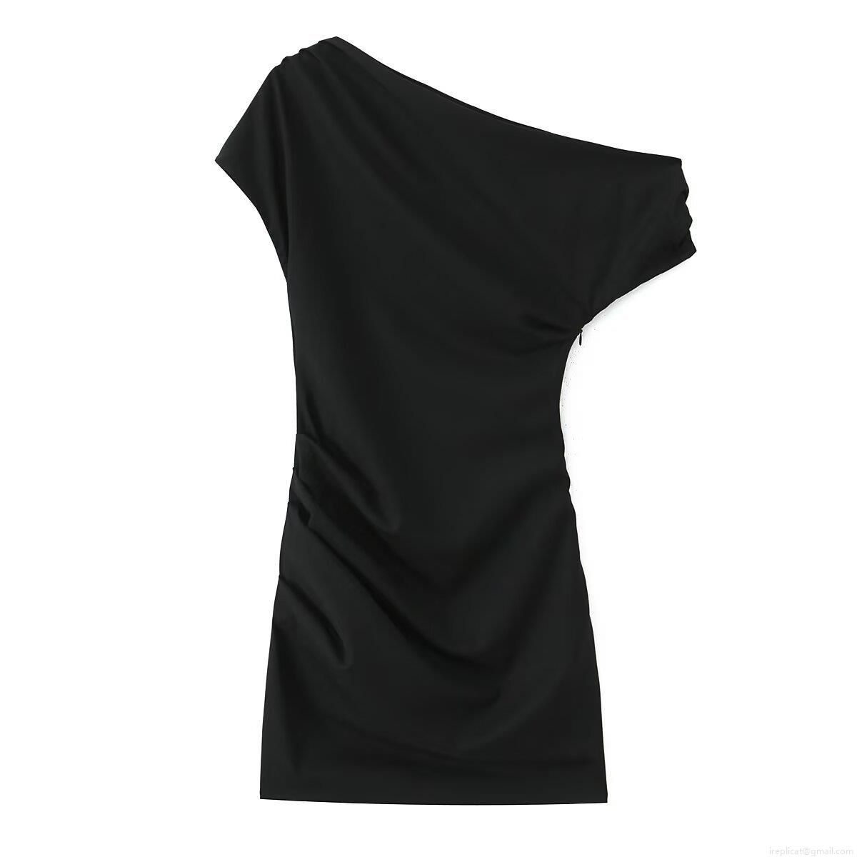 • Sexy One Shoulder Ruched Mini Dress Polyester Spandex Slim Fit Asymmetric Black Bodycon Party Dress For Women Clubwear Elegant Short Dress