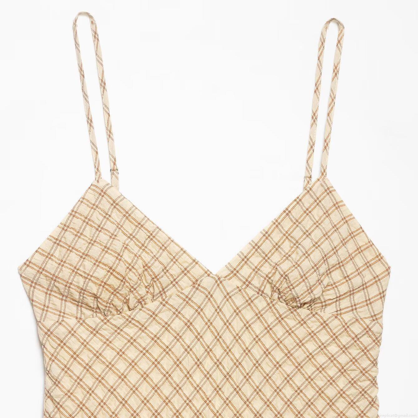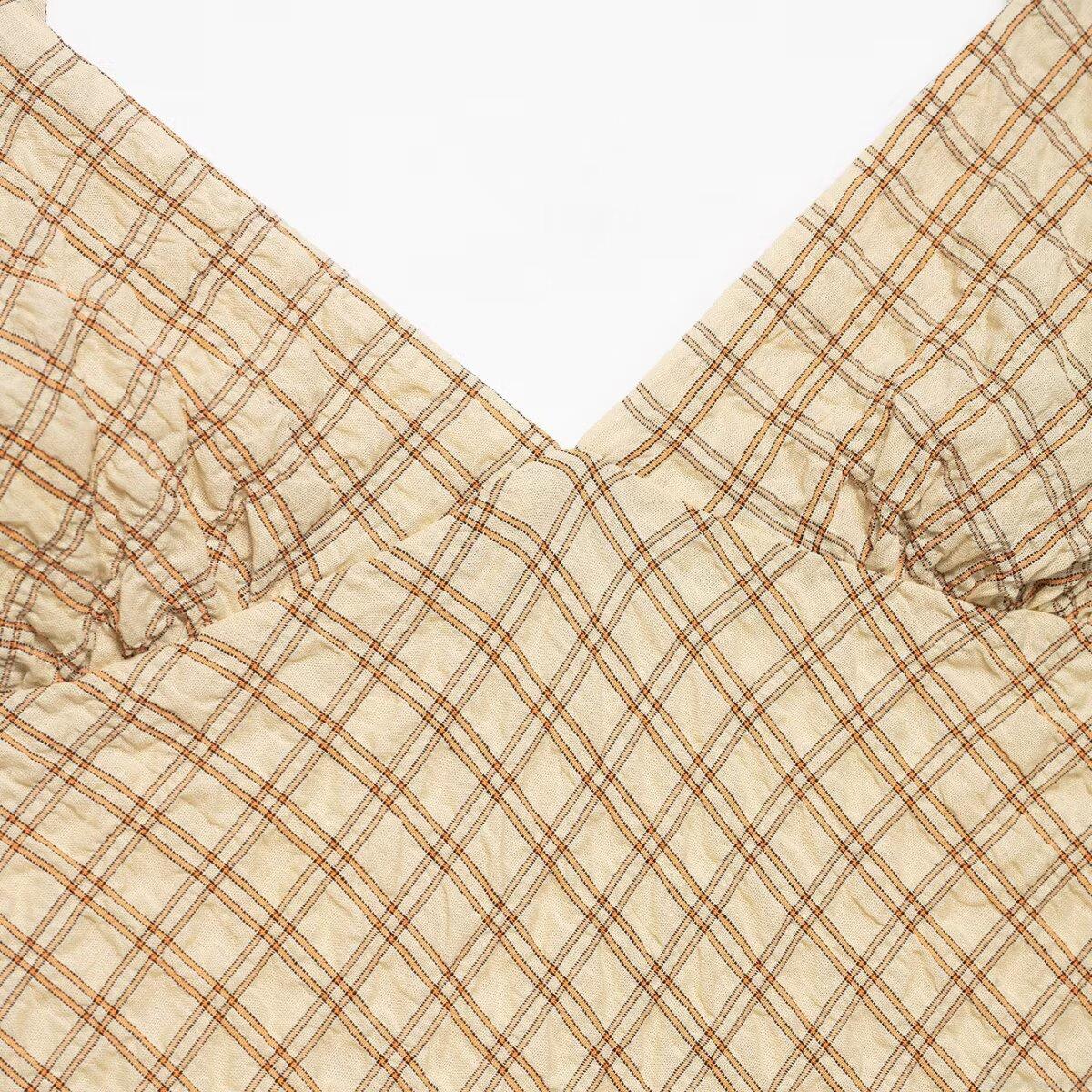 • Sexy Plaid Lace V-Neck Cami Dress Women Vacation High Waist Asymmetric Ruffle Hem Mini Dress Spaghetti Strap Polyester Spandex Dress