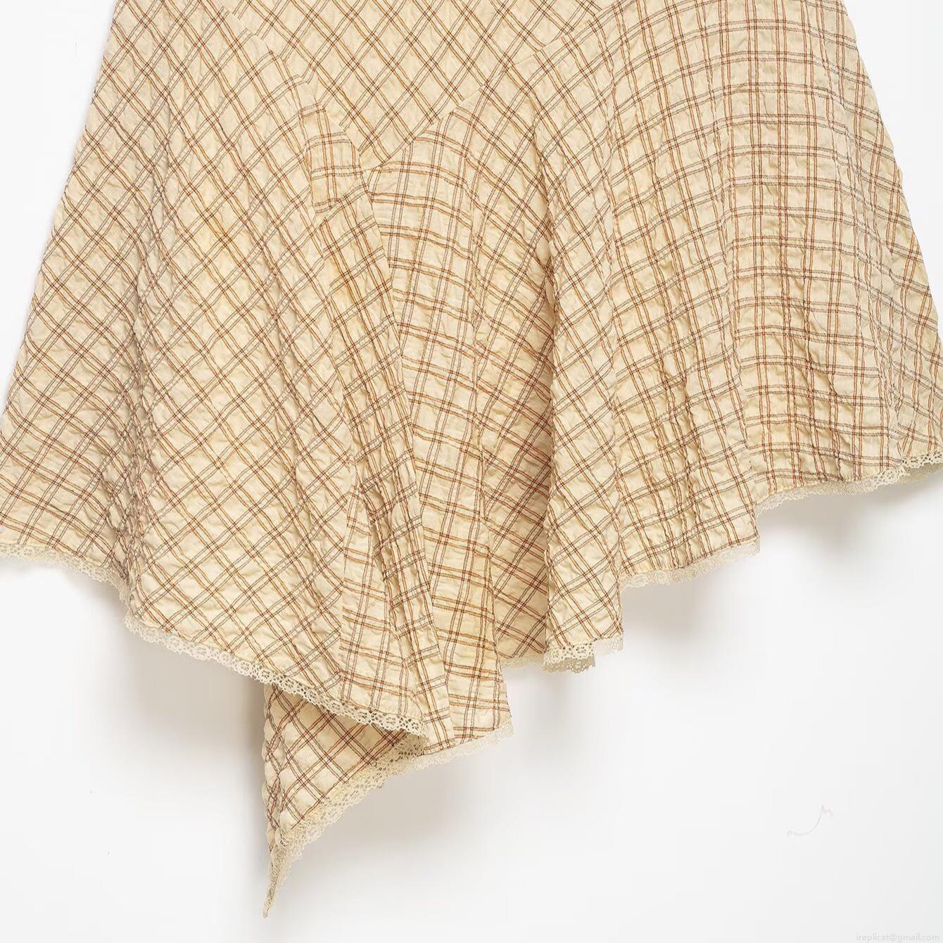 Lace, Gingham, Ruffles, Off-shoulder, Asymmetrical Skirt