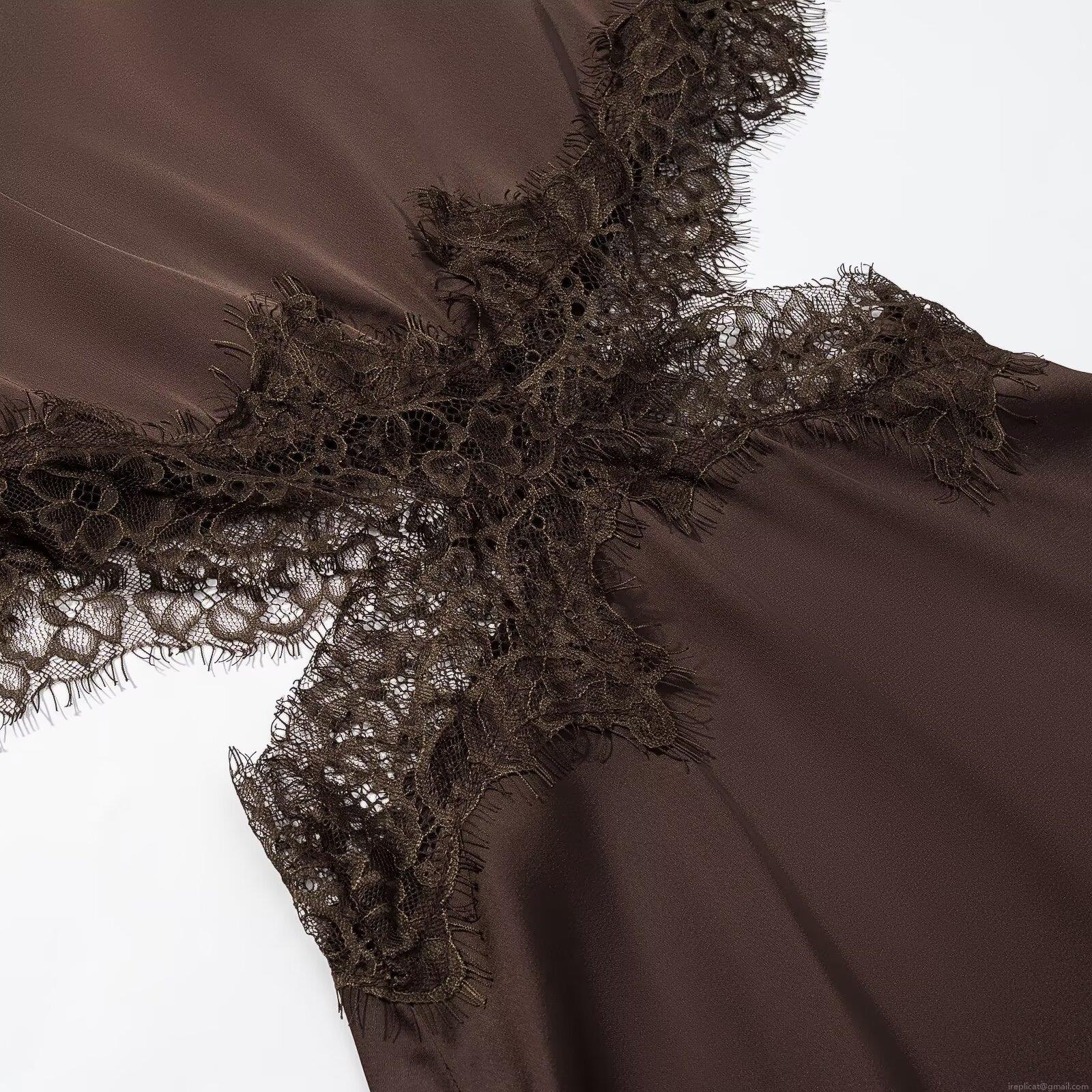 • Sexy Satin Lace Cutout Mini Dress For Women Elegant Asymmetric Hem Sleeveless Party Club Evening Dress Coffee Solid Color Celebrity Style Bodycon Dress