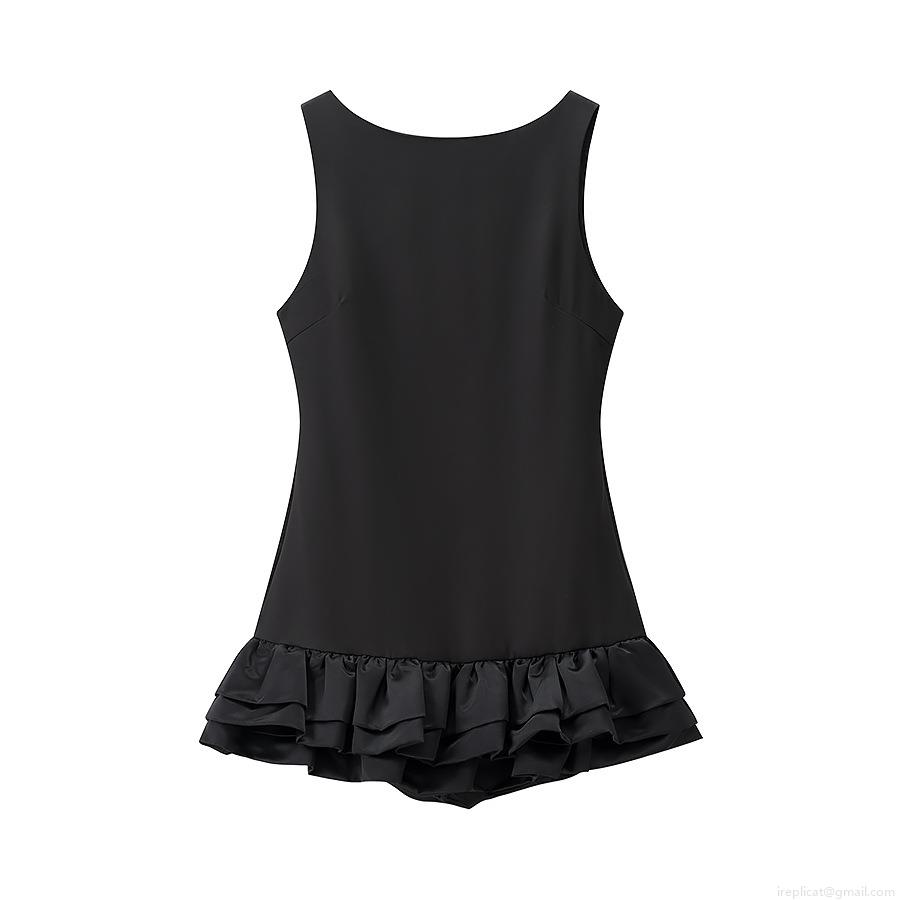 • Sexy Sleeveless Backless Mini Dress Polyester Ruffle Hem Halter Neck Bodycon Party Dress For Women Solid Color