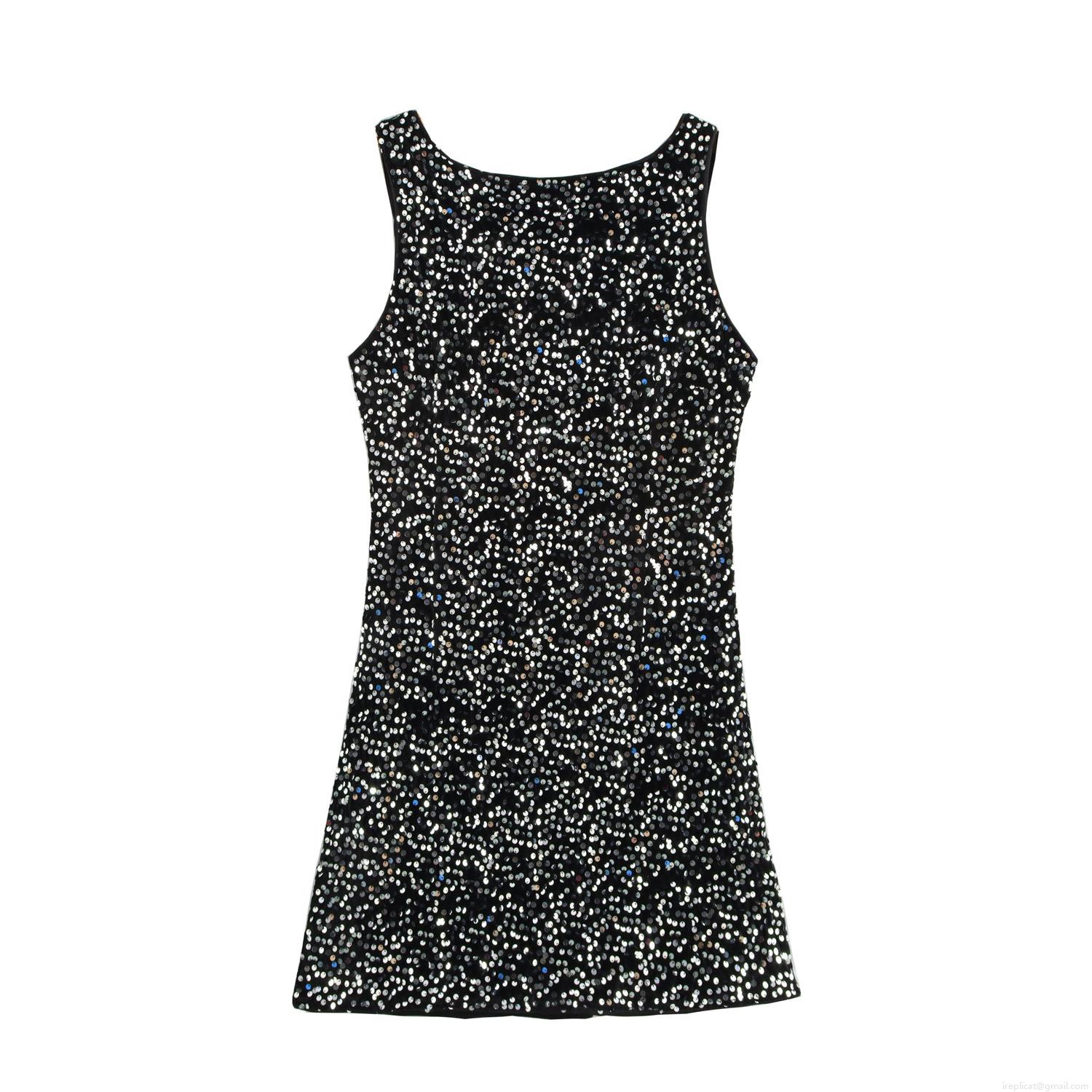 Sexy Sleeveless Sequin Mini Dress Backless Bodycon Party Clubwear Sparkly Polyester Night Out Evening Dress For Women
