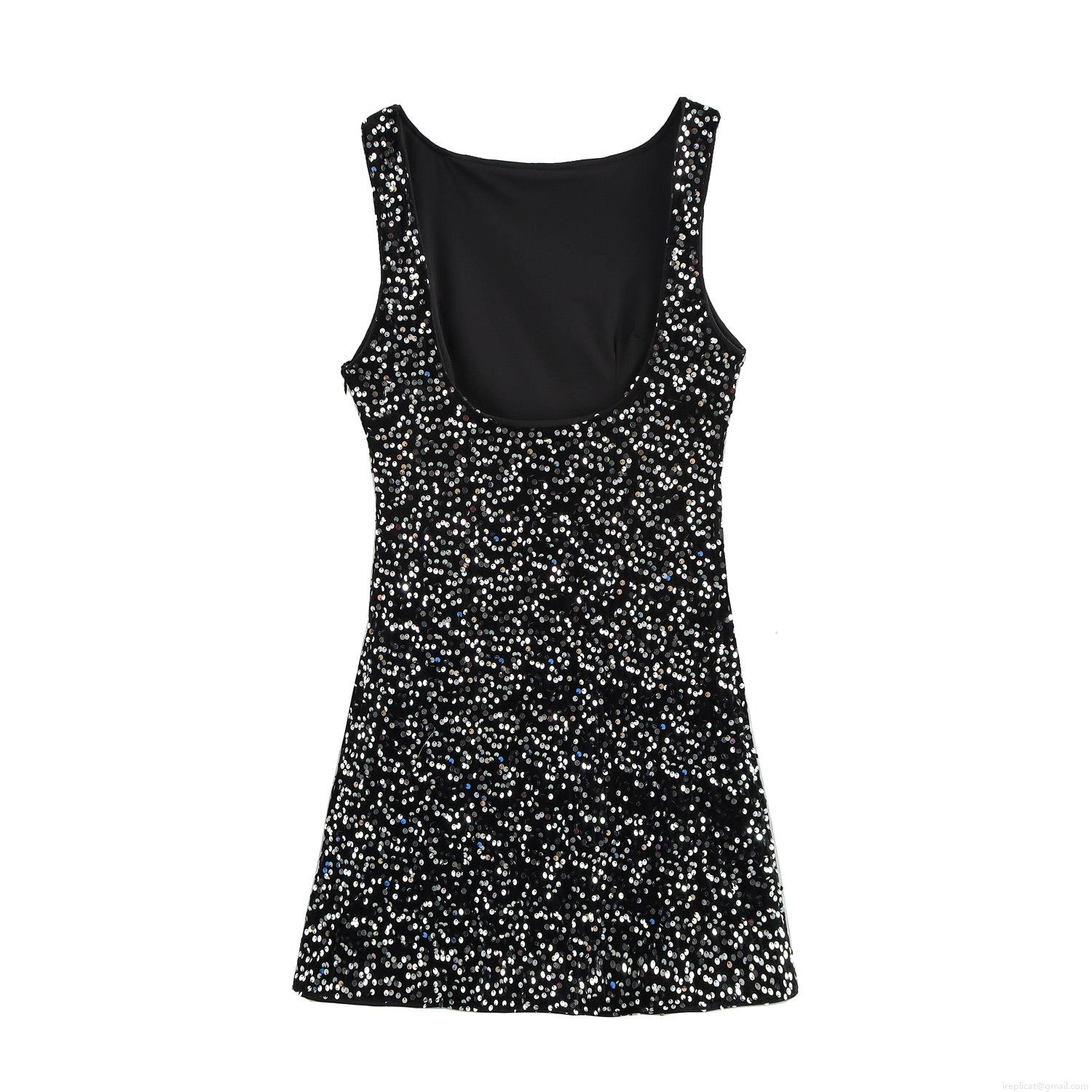 • Sexy Sleeveless Sequin Mini Dress Backless Bodycon Party Clubwear Sparkly Polyester Night Out Evening Dress For Women