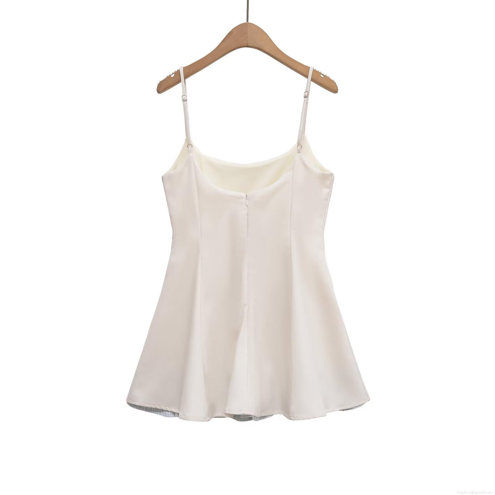 • Sexy Slim Fit Camisole A-Line Mini Dress For Women Summer Solid Color Contrast Layered Hem Sleeveless Polyester Spandex Short Dress For Party Clubwear Daily