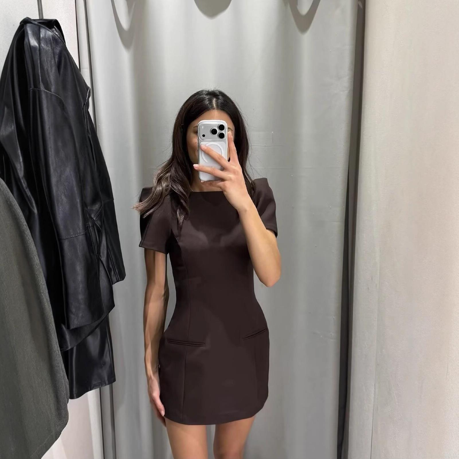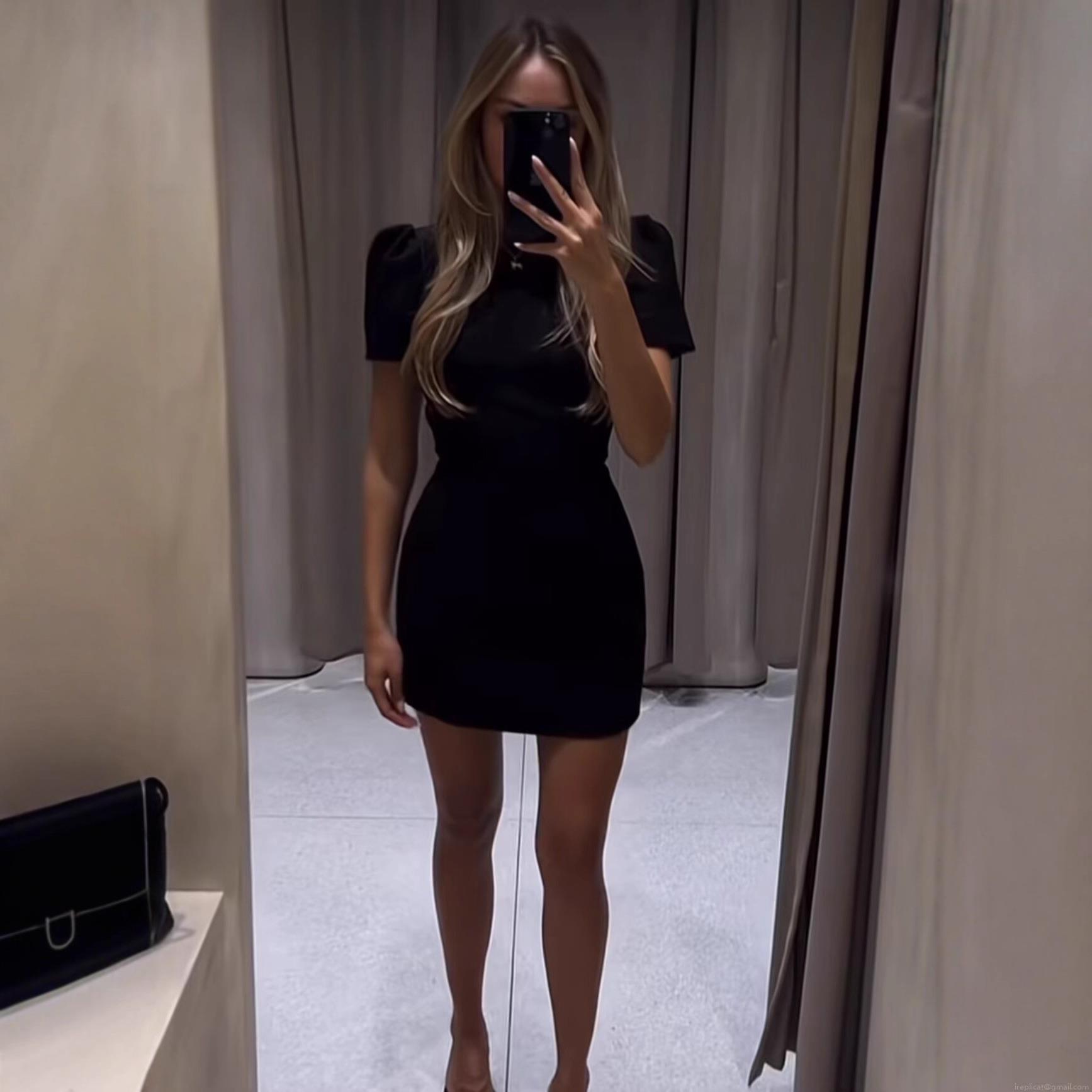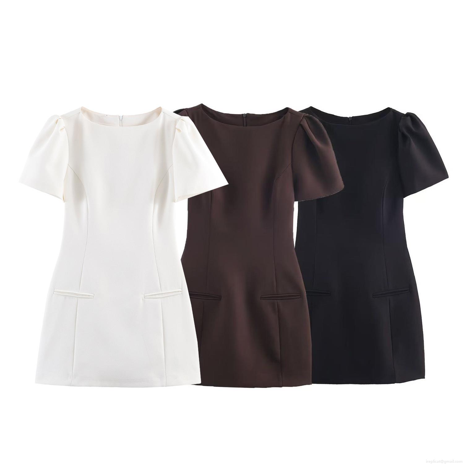 • Sexy Slim Fit Mini Dress Polyester Bubble Short Sleeve A-Line Short Skirt With Back Zipper And Mock Pockets For Women Party Chic Daily Wear