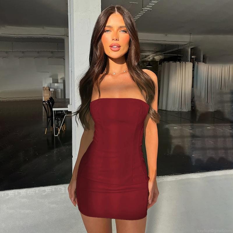 Sexy Strapless Bodycon Mini Dress For Women Polyester Spandex Slim Fit Tube Top Backless Zip Clubwear Party Night Outfits Sleeveless Short Dress