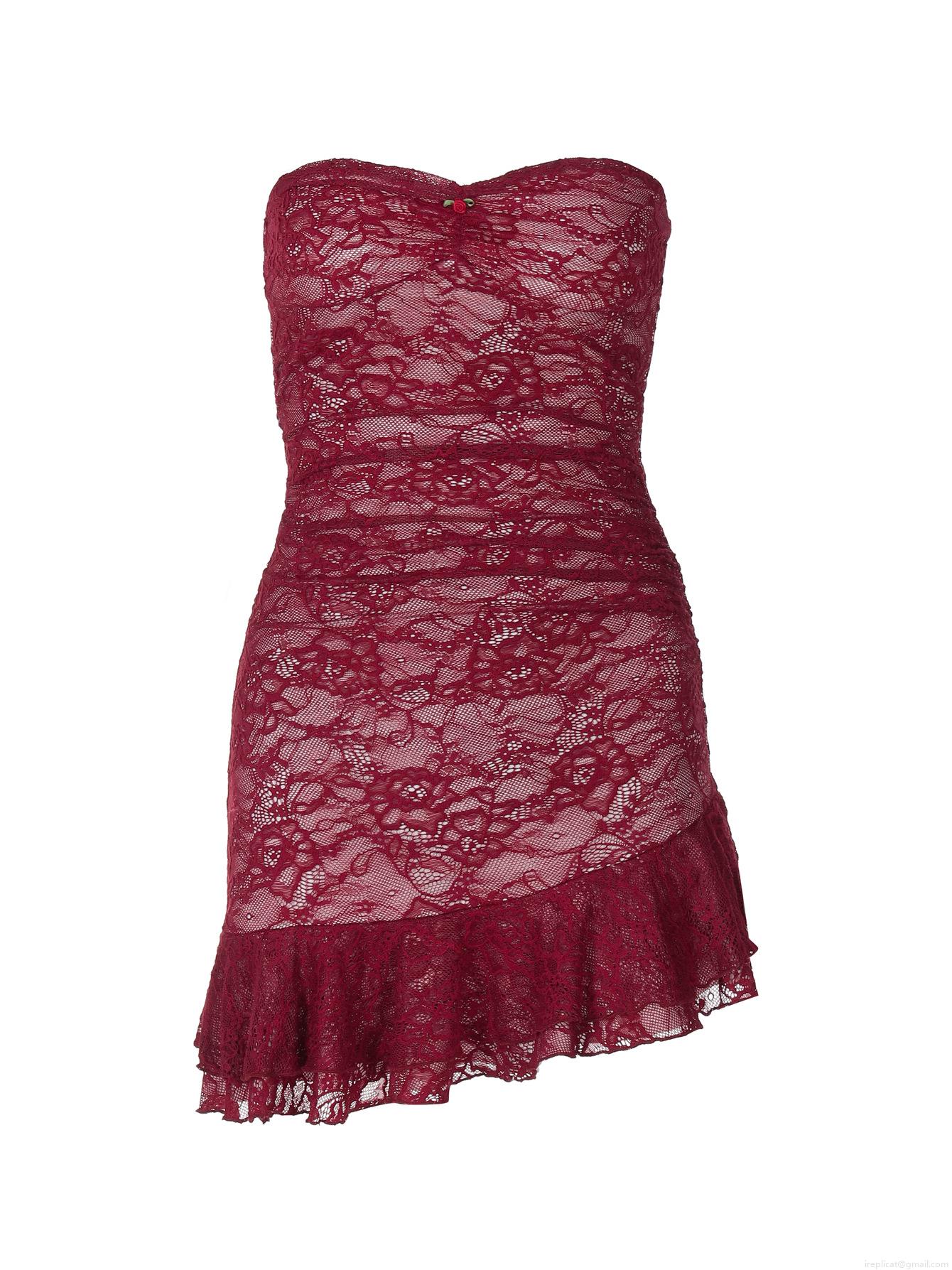 • Sexy Strapless Lace Bodycon Mini Dress For Women Ruched Ruffle Hem Slim Fit Sleeveless Party Clubwear Night Out Short Dress Wine Red Black