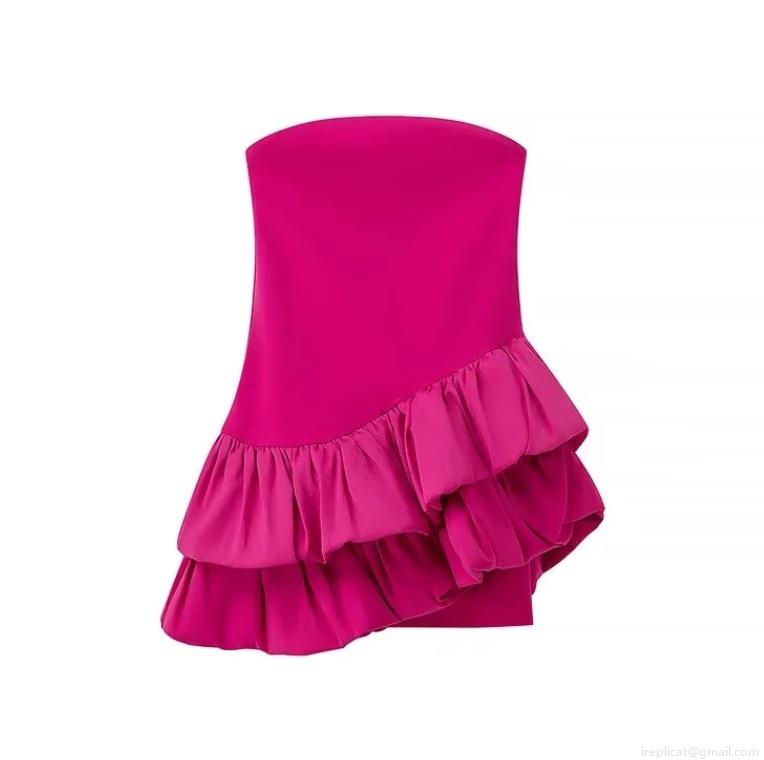 • Sexy Strapless Ruffle Hem Mini Dress Women Elegant Polyester Solid Color Tube Top Party Bodycon Dresses Evening Clubwear Cocktail Gowns