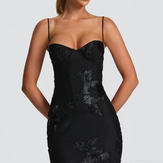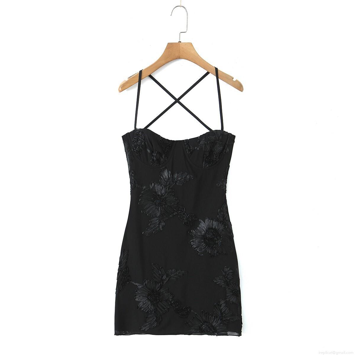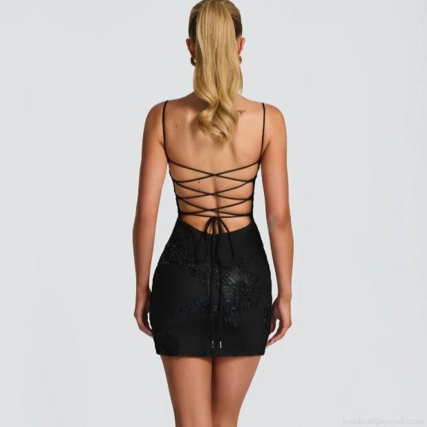 • Sexy Women 3D Floral Embroidery Bodycon Mini Dress Back Lace-up Spaghetti Strap Sleeveless Party Club Dress Spicy Girl Evening Wear
