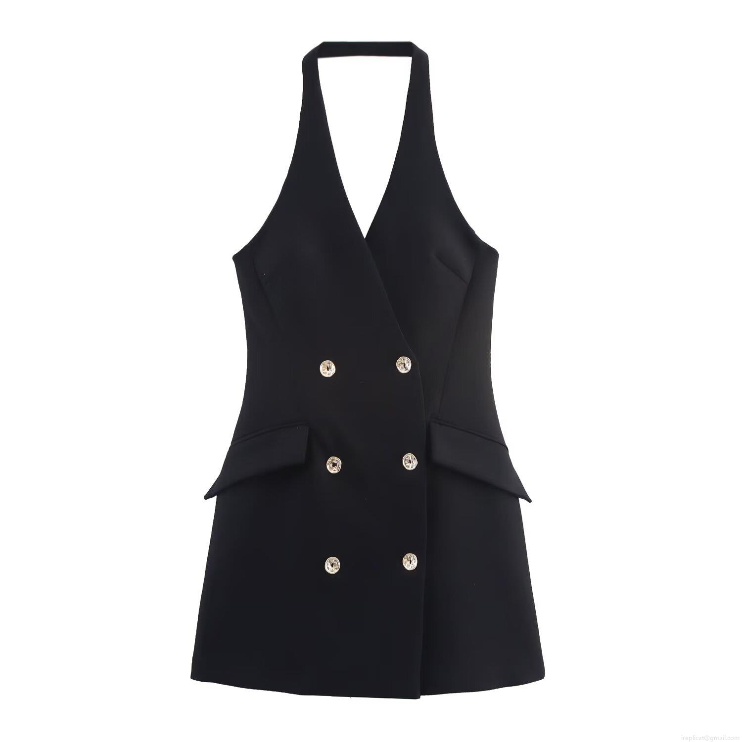 • Sexy Women Halter Neck Mini Blazer Dress Backless Double Breasted Gold Buttons Polyester Woven Slim Fit Party Club Date Night Summer Elegant Short Dress