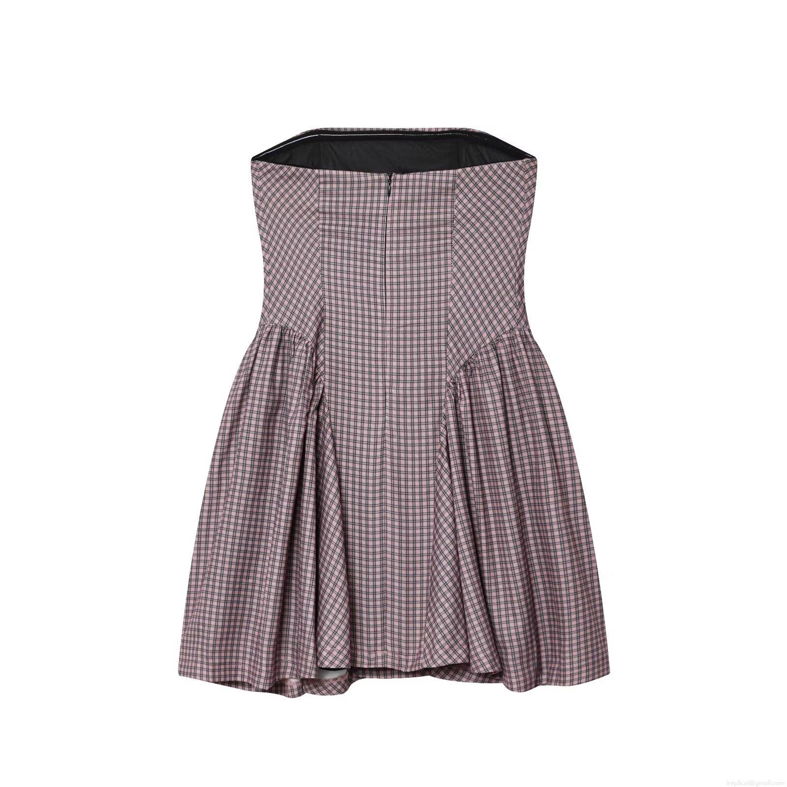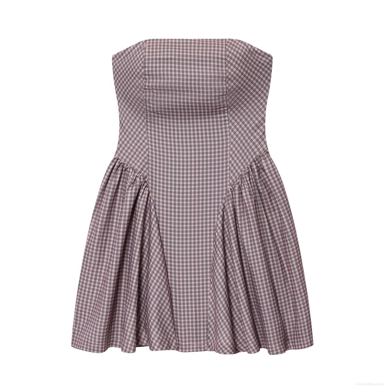 • Sexy Women Pink Black Plaid Strapless Mini Dress Elegant Backless Bubble Hem A-Line Dress For Summer Vacation Party Clubwear Outfits