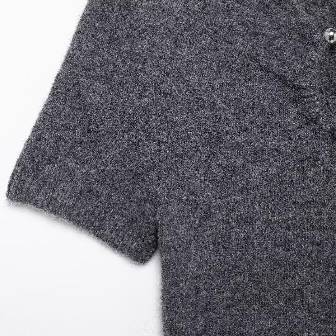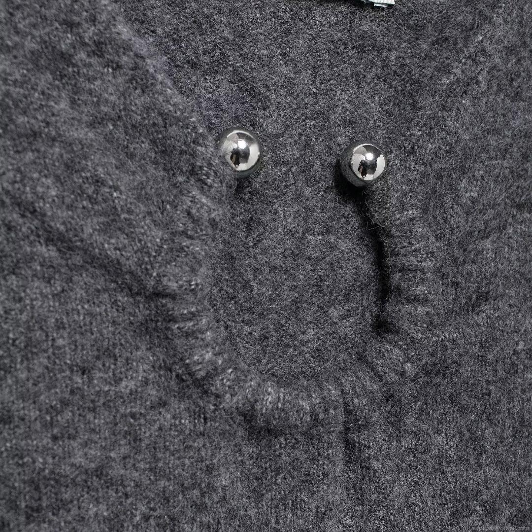 • Sexy Women Short Sleeve Knit Mini Dress With Metal U-Ring Decor Elegant Bodycon Polyester Knitting Grey Dress For Party Club Streetwear