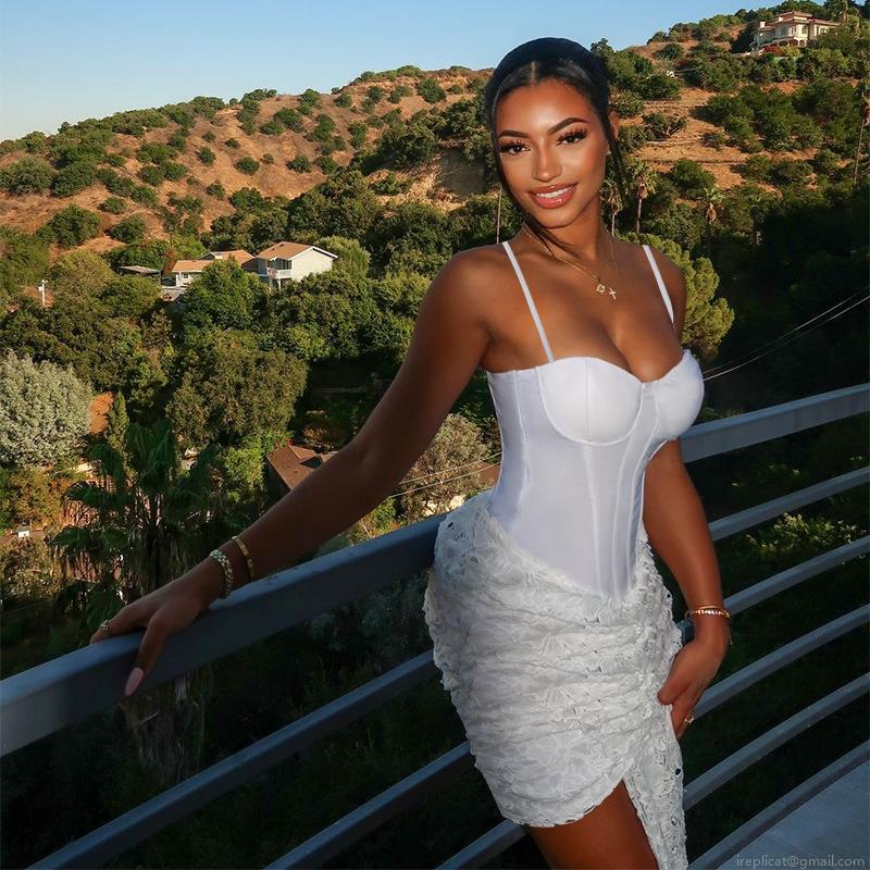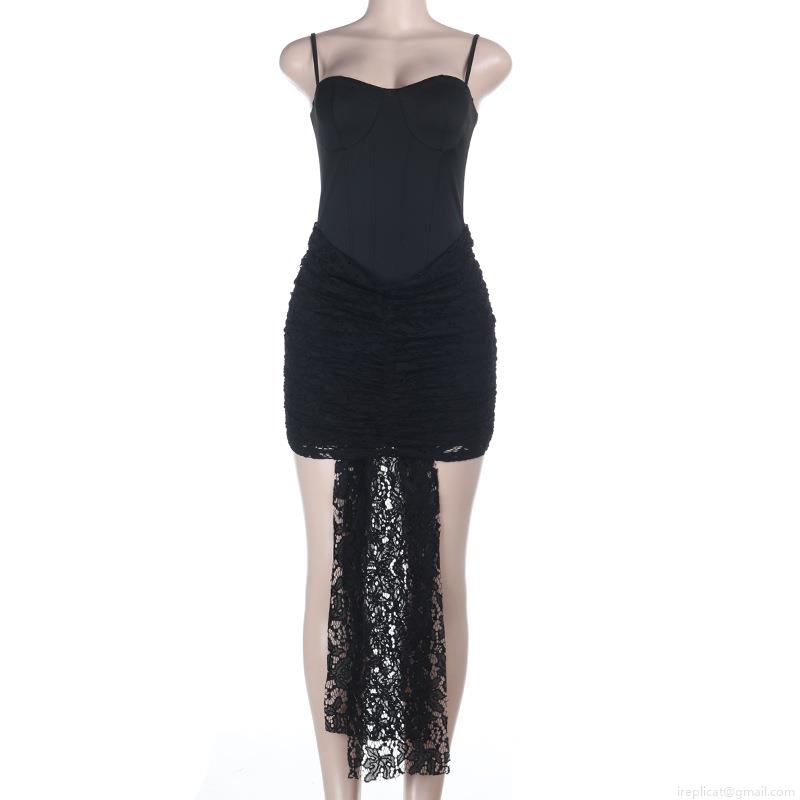 Sexy Women Spaghetti Strap Corset Mini Dress Lace Patchwork Fishbone Bodycon Party Nightclub Evening Banquet Dress
