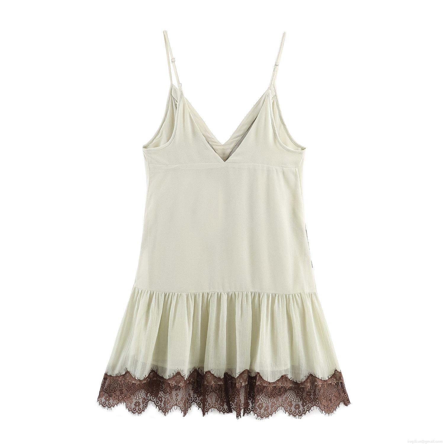 • Sexy Women's Lolita Style Lace Patchwork Mini Dress Deep V Neck Adjustable Spaghetti Strap Polyester Chiffon Summer Party Dress