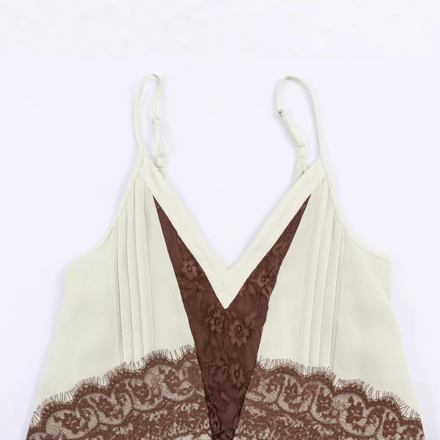 Pleats, V-neck, Lace Patchwork, Lace Floral, Adjustable Thin Straps