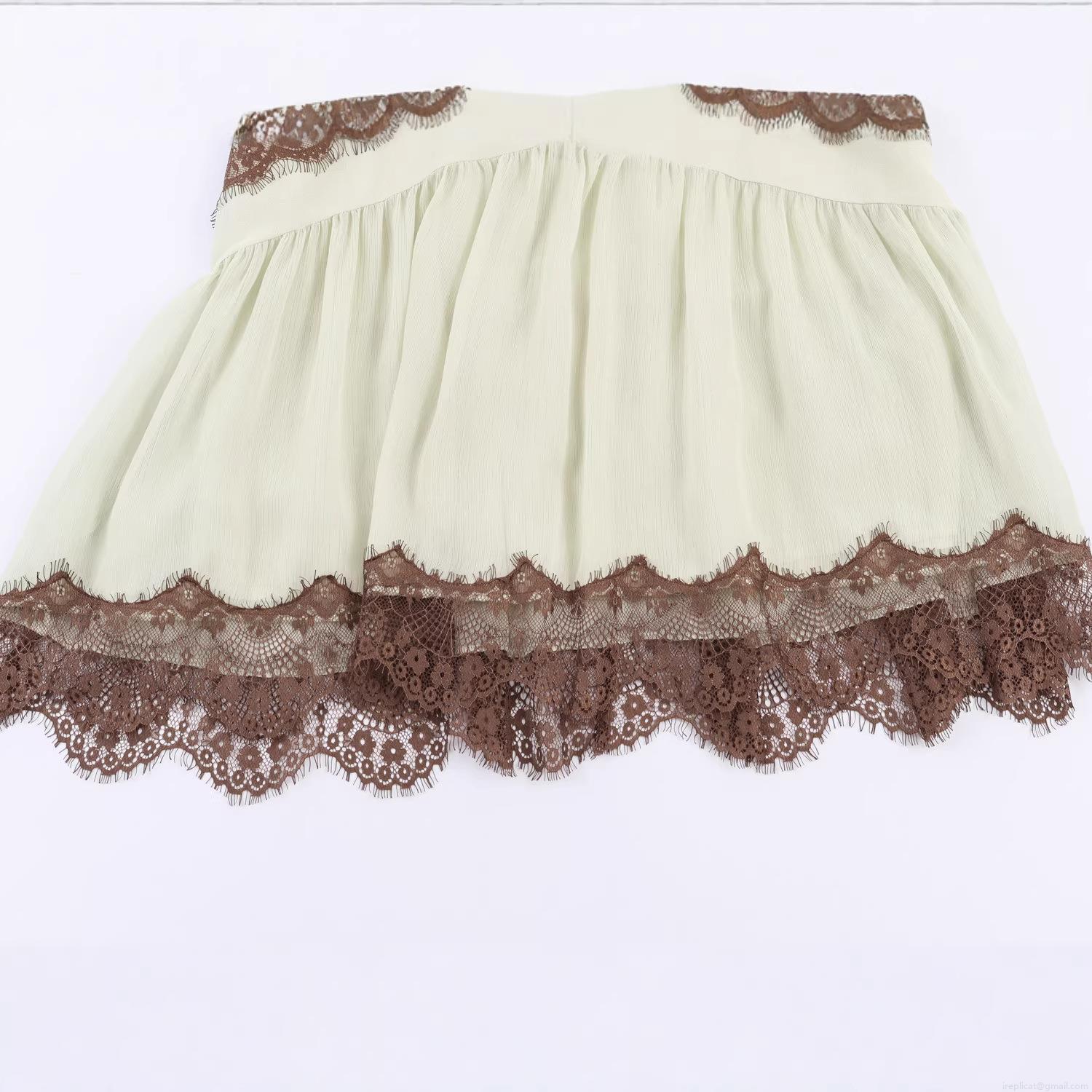 Sexy Women's Lolita Style Lace Patchwork Mini Dress Deep V Neck Adjustable Spaghetti Strap Polyester Chiffon Summer Party Dress
