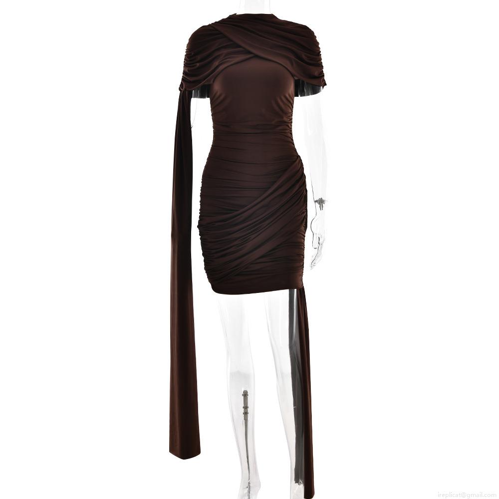 Sexy Women's Ruched Bodycon Mini Dress Milk Silk Single Shoulder Asymmetric Ribbon Party Dress Solid Color Sleeveless Clubwear Short Dress