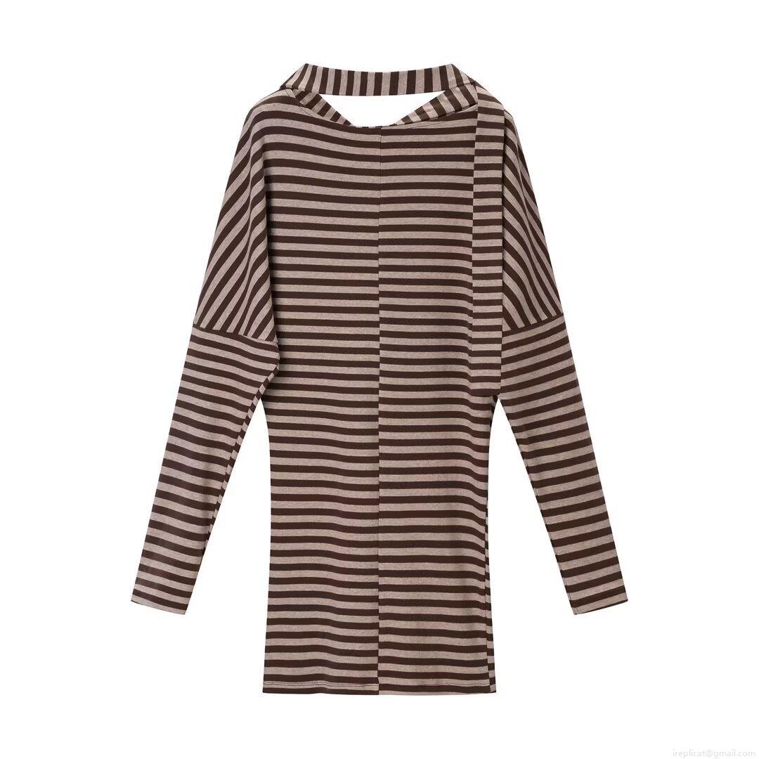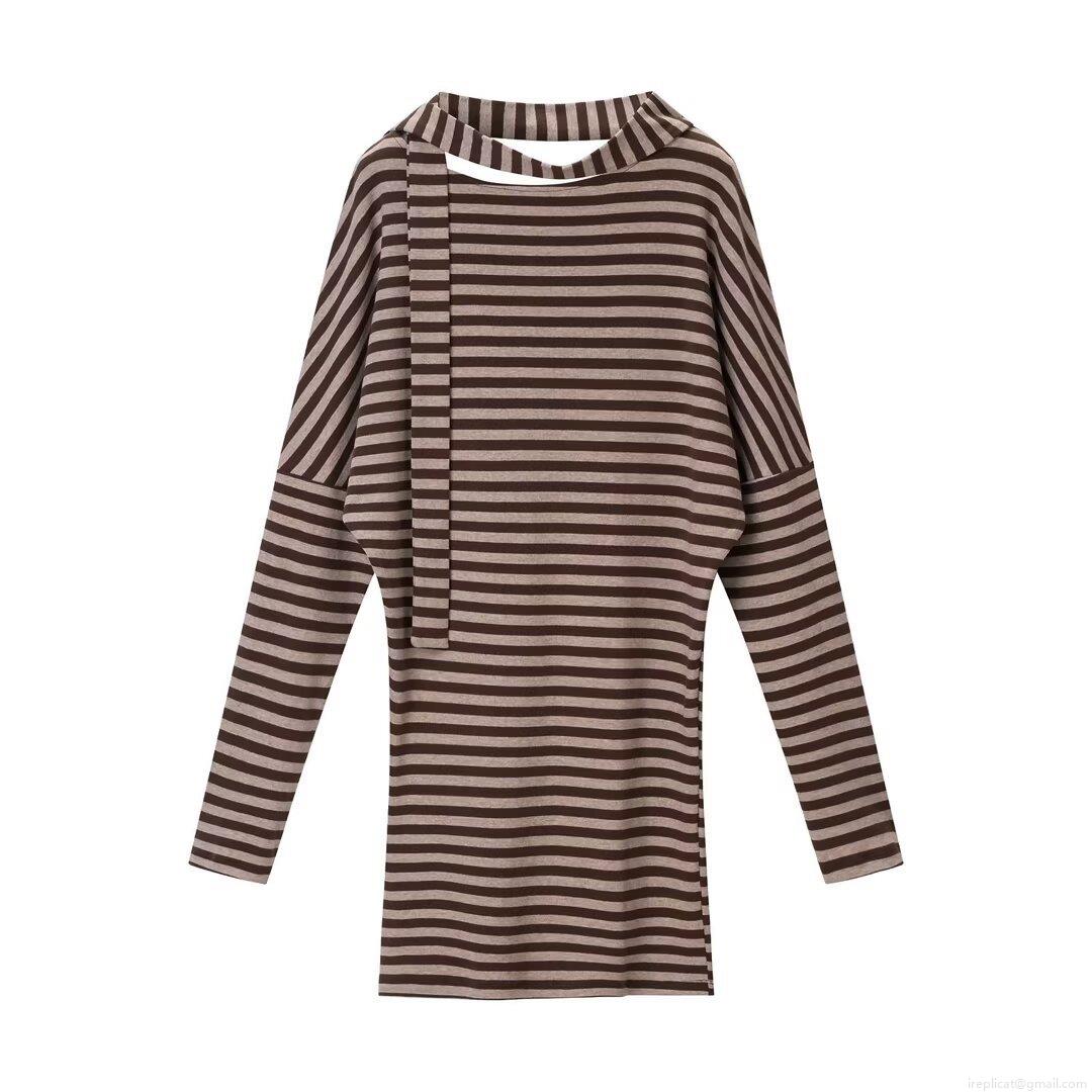 • Sexy Women's Striped Long Sleeve Mini Dress Knitted Polyester Cowl Neck Loose Fit T-Shirt Dress for Autumn Party Dating Fashion Casual Wear