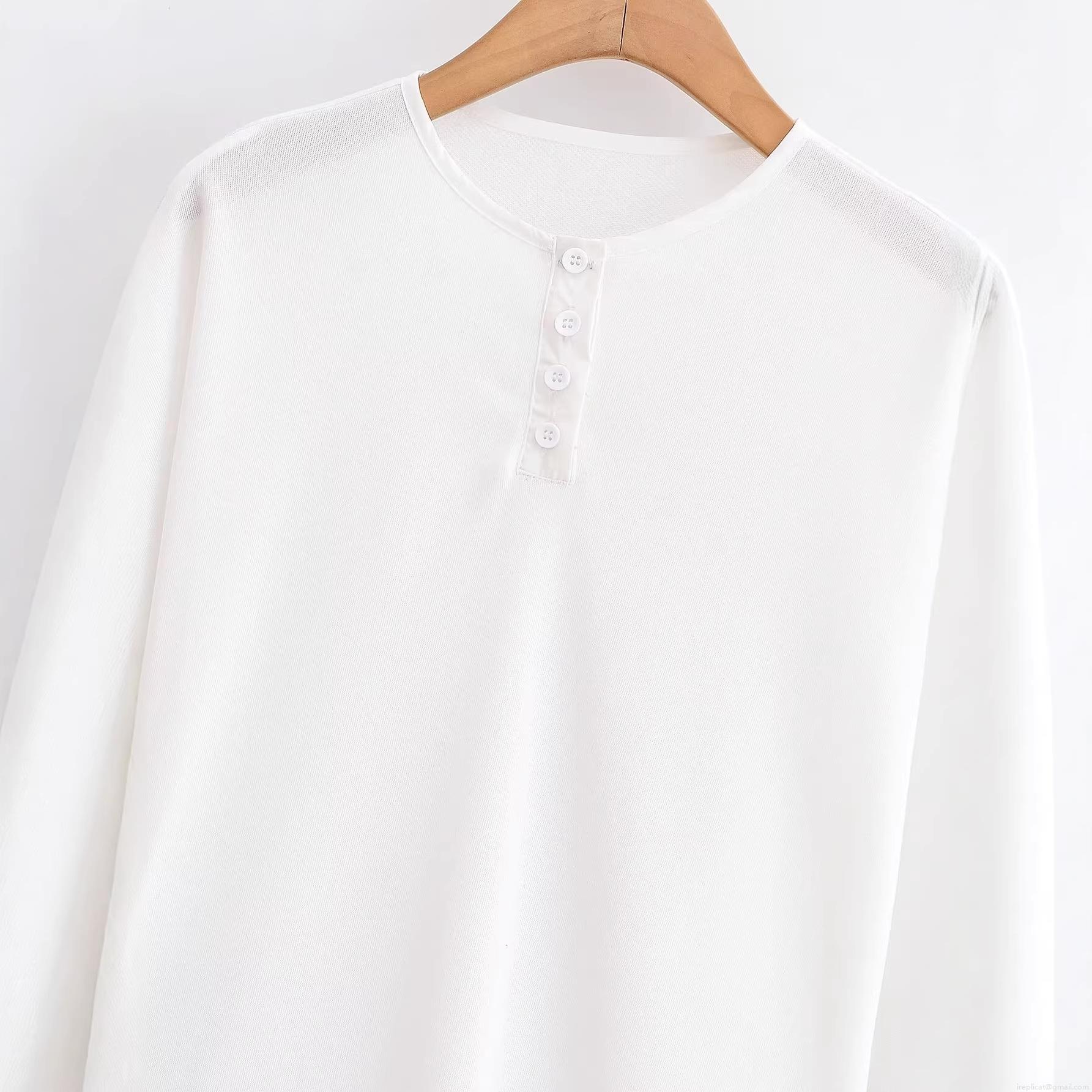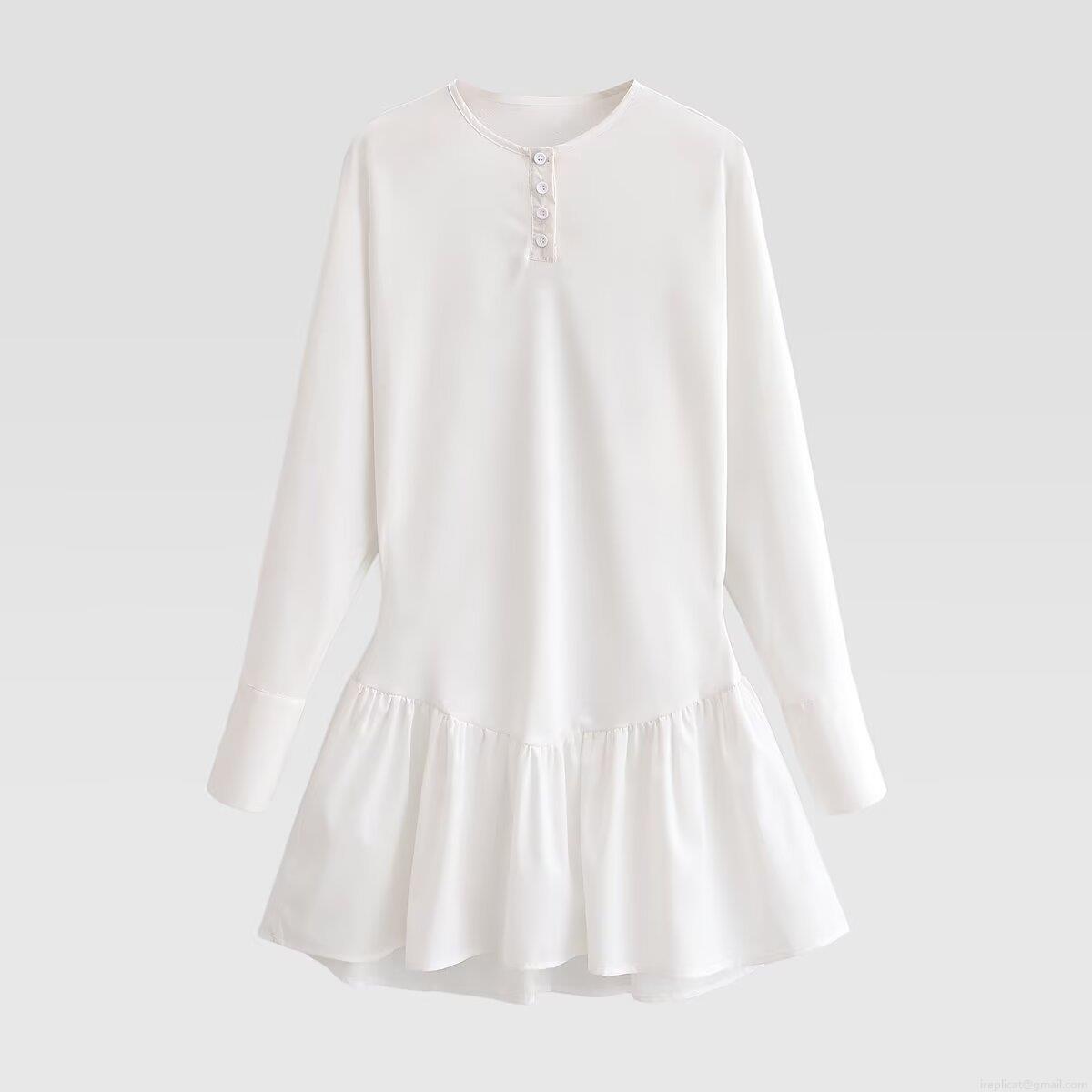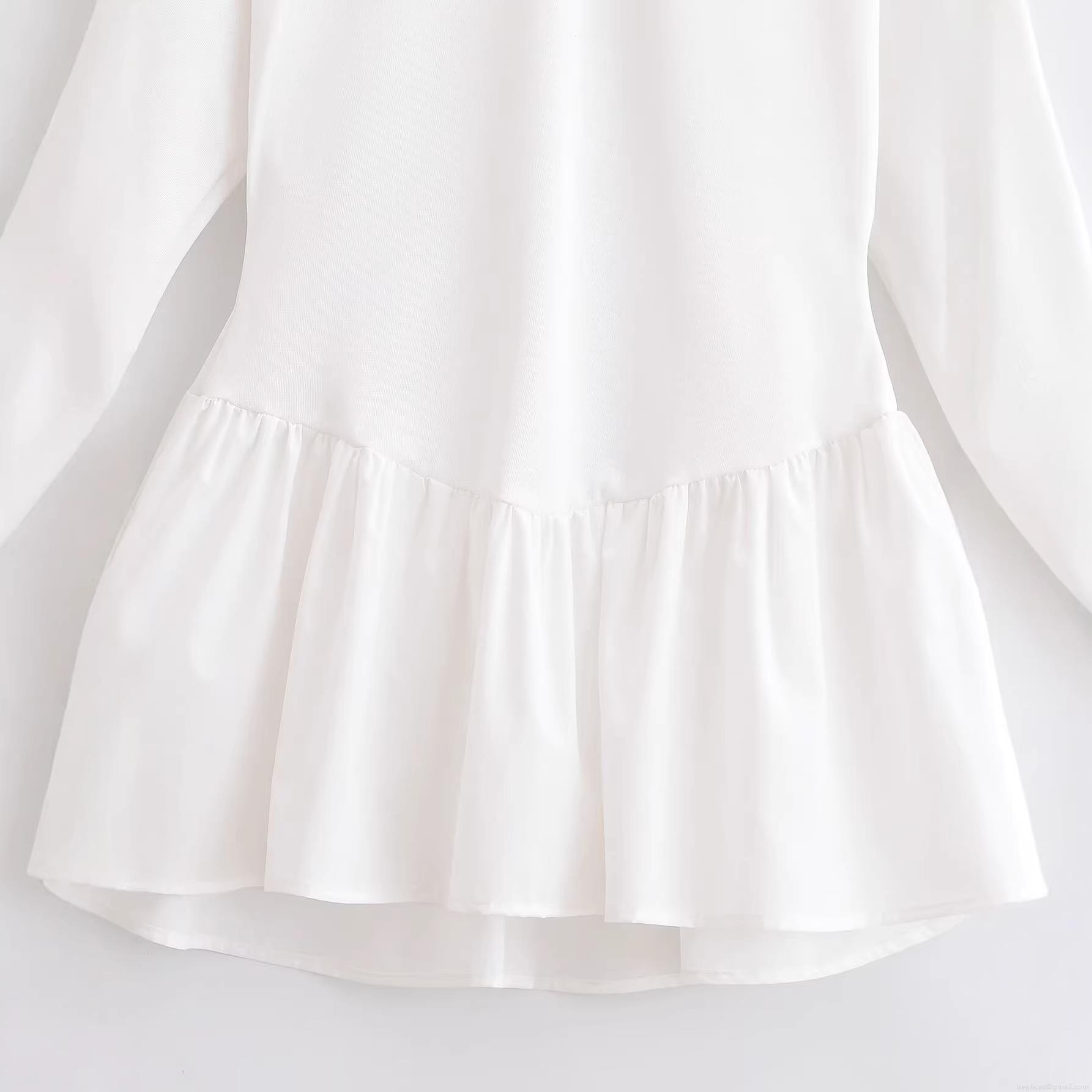 • Sexy Women's White Long Sleeve Mini Dress Ruffle Hem Round Neck Button Front Loose Fit Short Dress for Daily Dating Casual Polyester Fashion