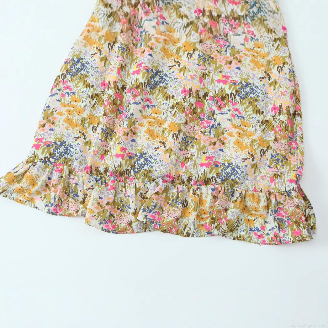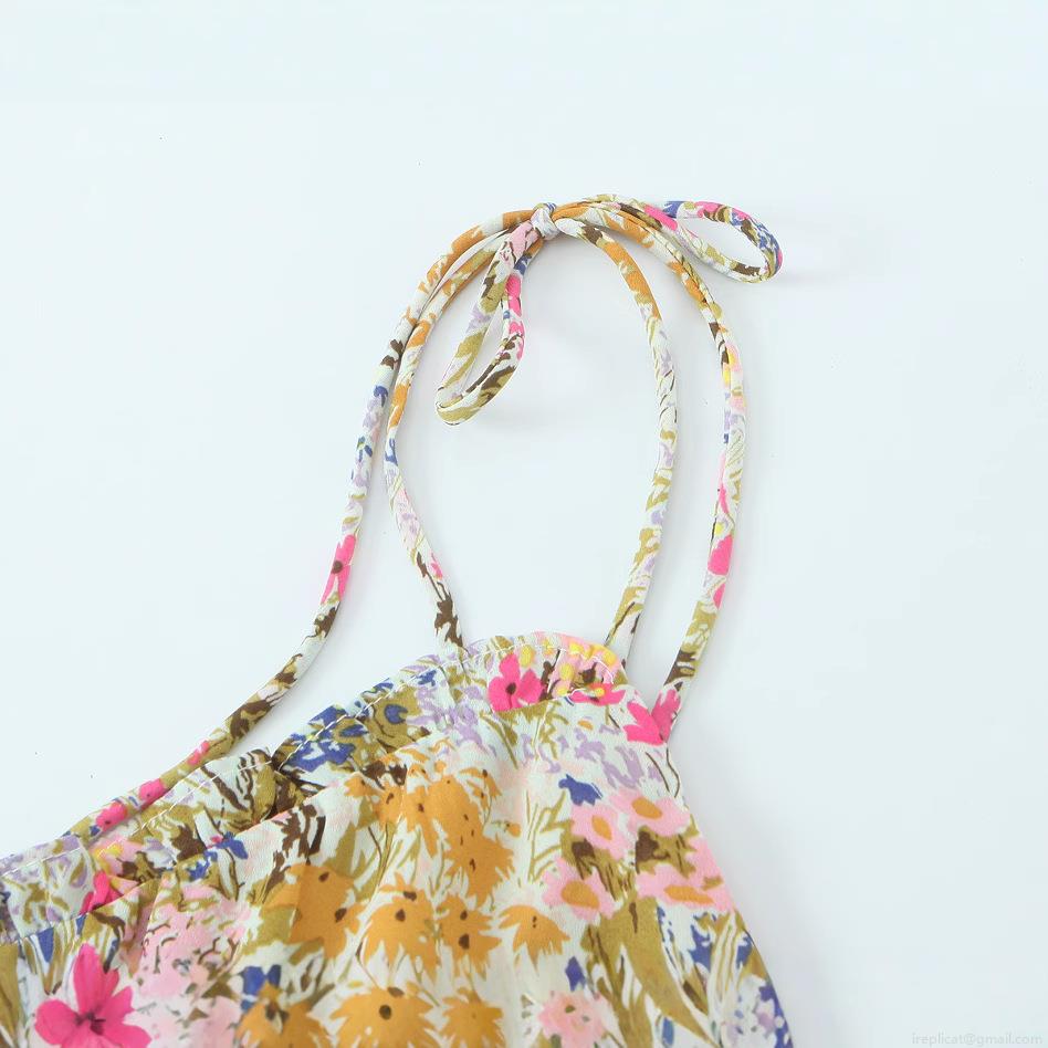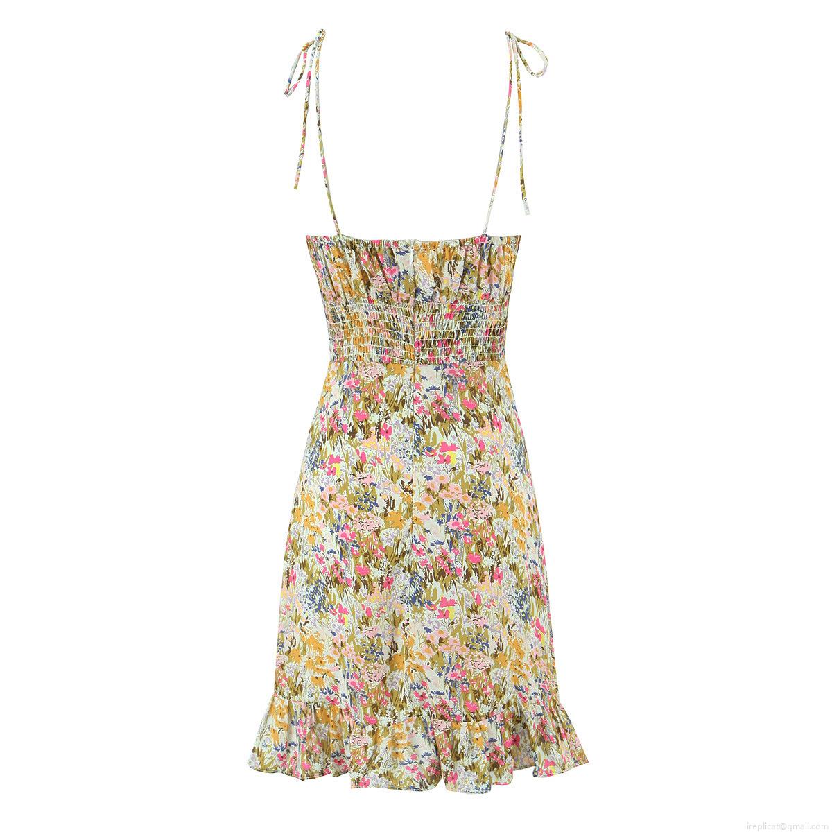 • Summer Floral Print V-Neck Cami Mini Dress With Ruffle Hem And Tie Shoulder Straps 100% Polyester Sleeveless Bohemian A-Line Party Dress For Women